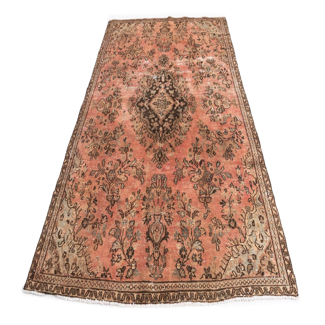 This Persian Ultra Vintage rug is an antique Persian Rug that has been washed, over-dyed, and then shaved down to a low pile. Look at the detail pictures to fully appreciate the uniqueness of this piece.