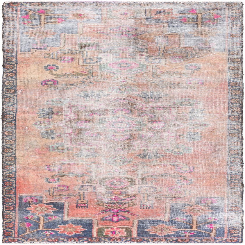 This Persian Ultra Vintage rug is an antique Persian Rug that has been washed, over-dyed, and then shaved down to a low pile. Look at the detail pictures to fully appreciate the uniqueness of this piece.