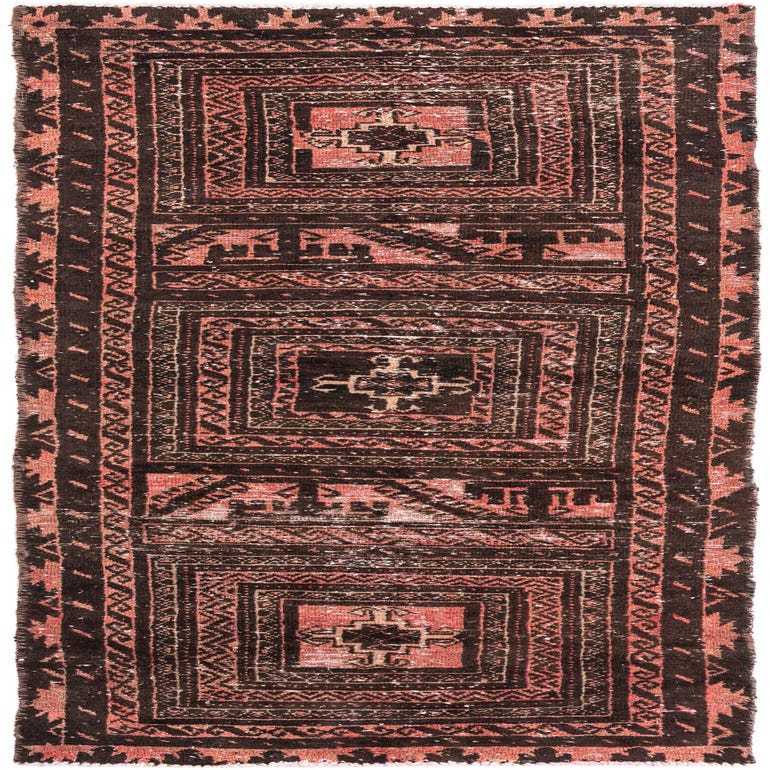 Primary color is Red. Colors in this rug include: Red, Brown.