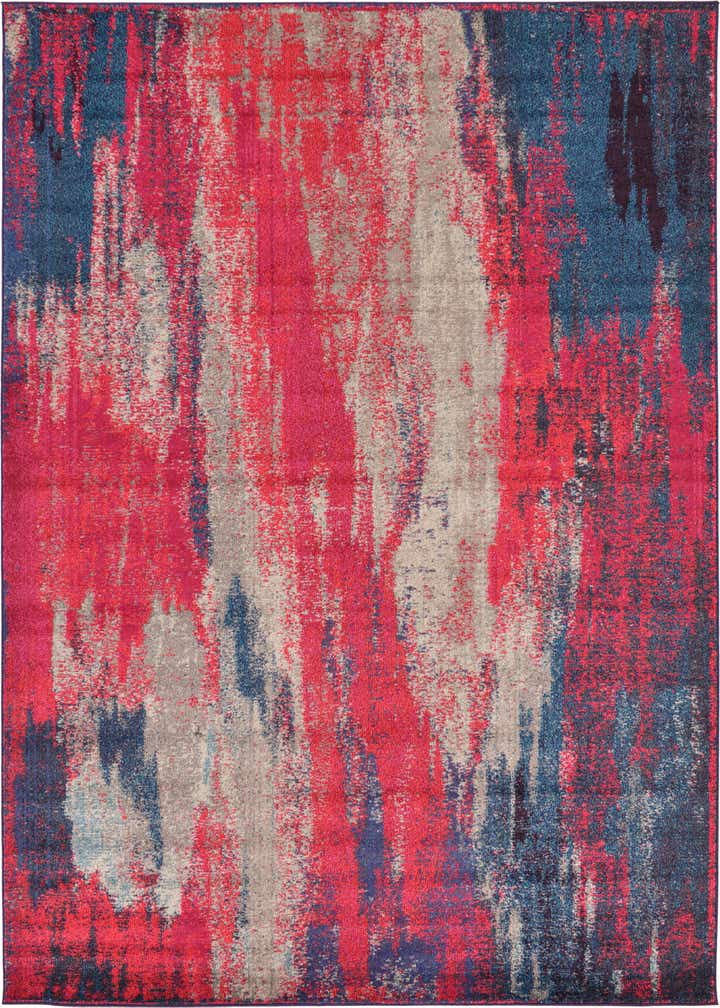 Primary color is Red. Colors in this rug include: Red, Beige, Gray, Navy Blue, Pink, Puce.