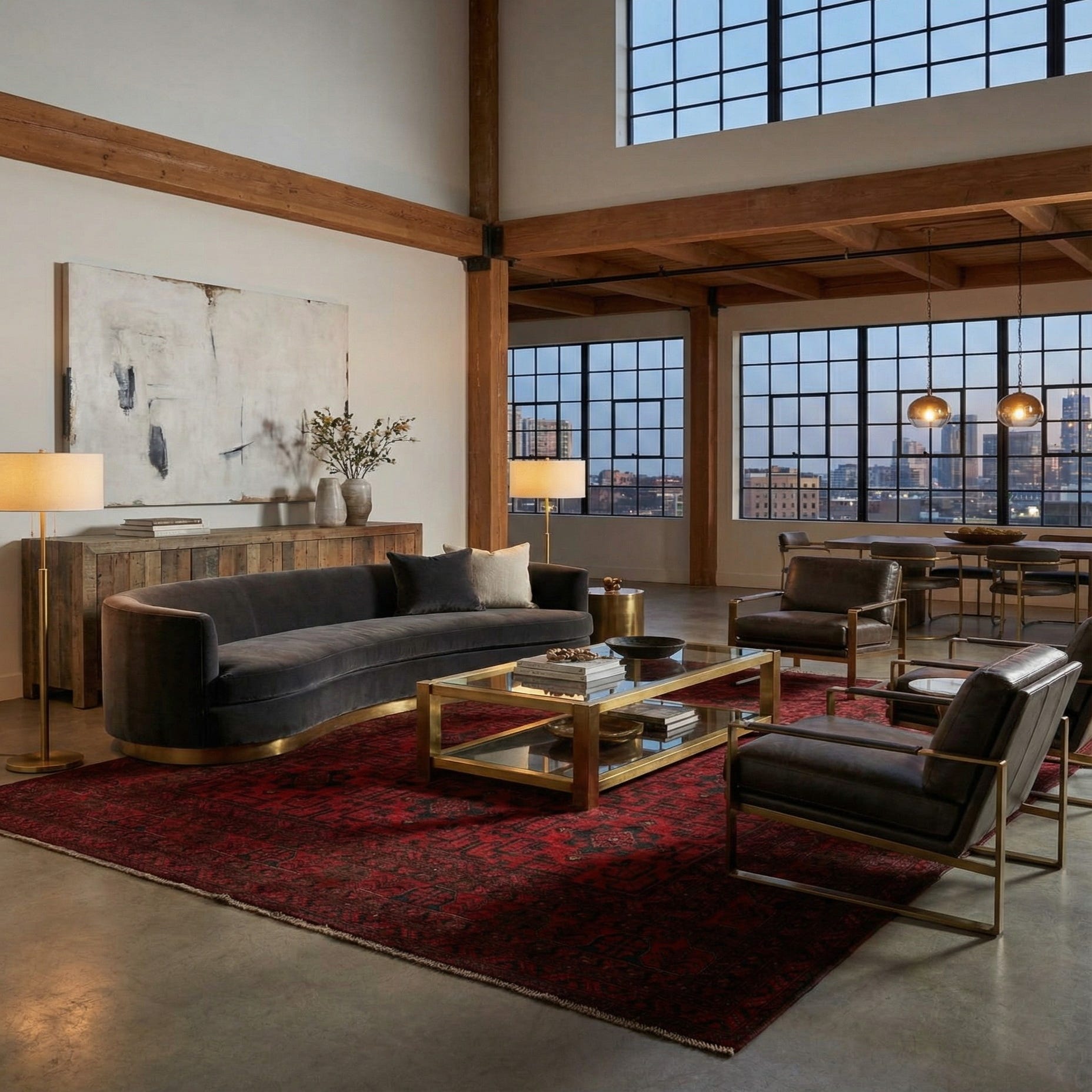 Primary color is Red. Colors in this rug include: Red, Black, Brown.