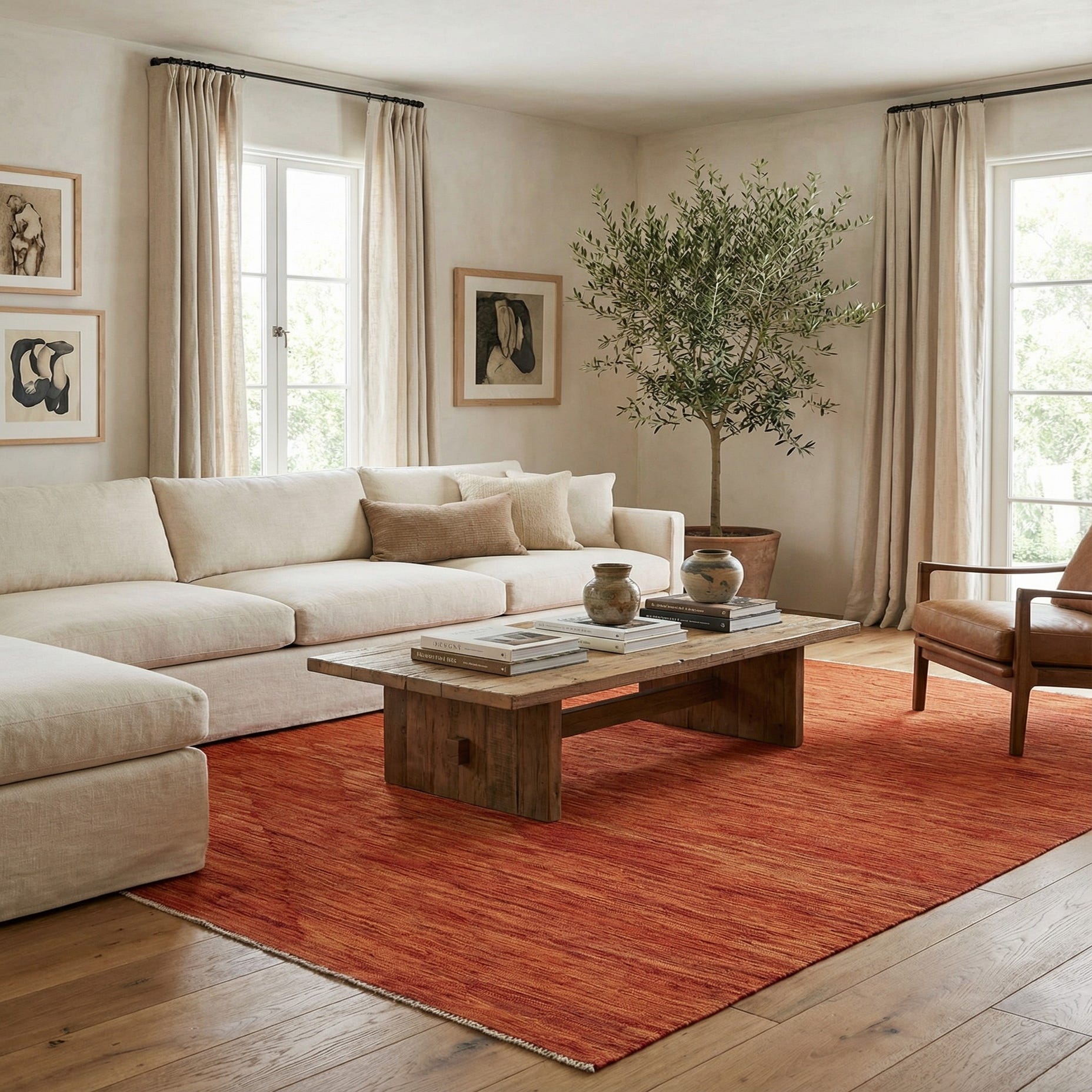 Primary color is Red. Colors in this rug include: Red, Beige.