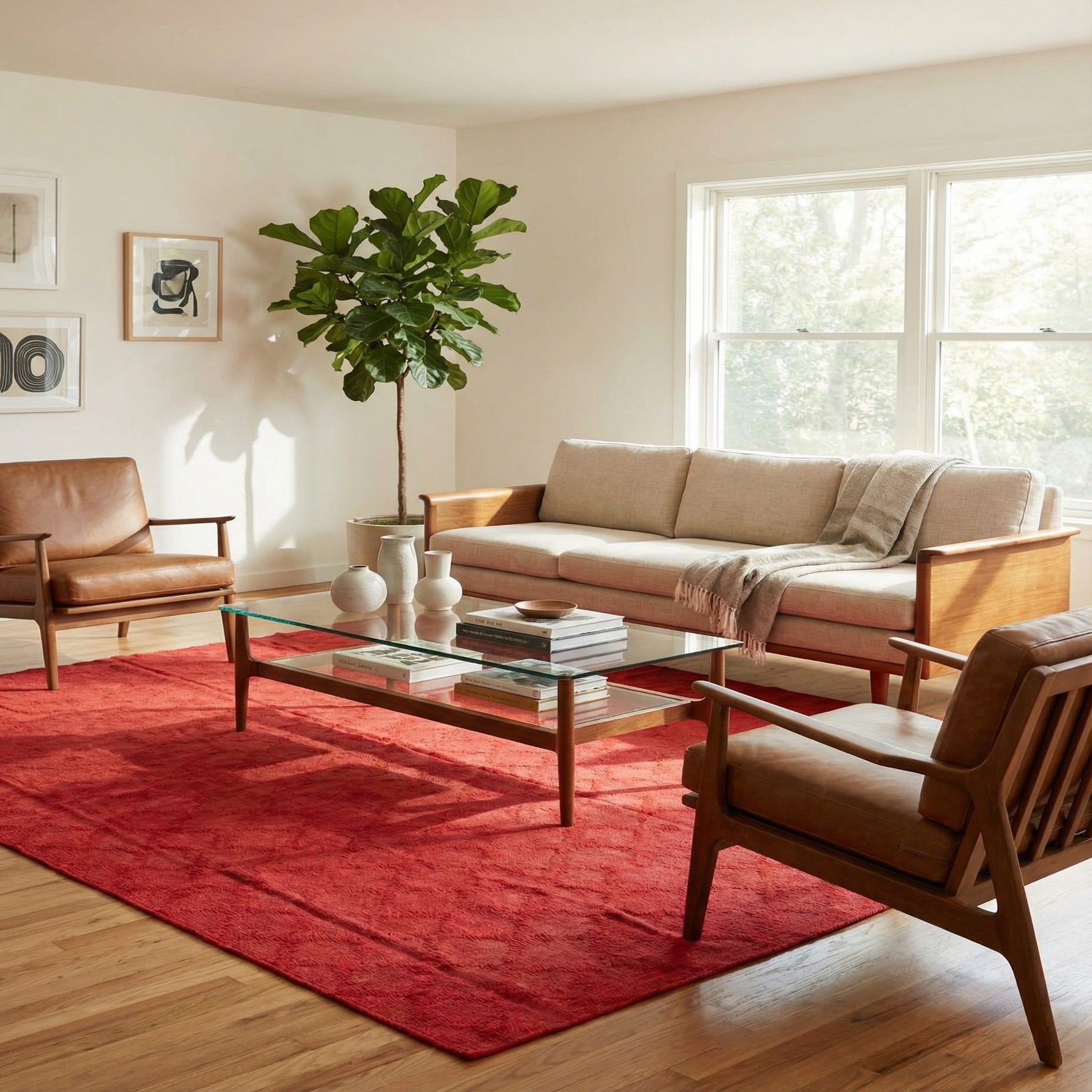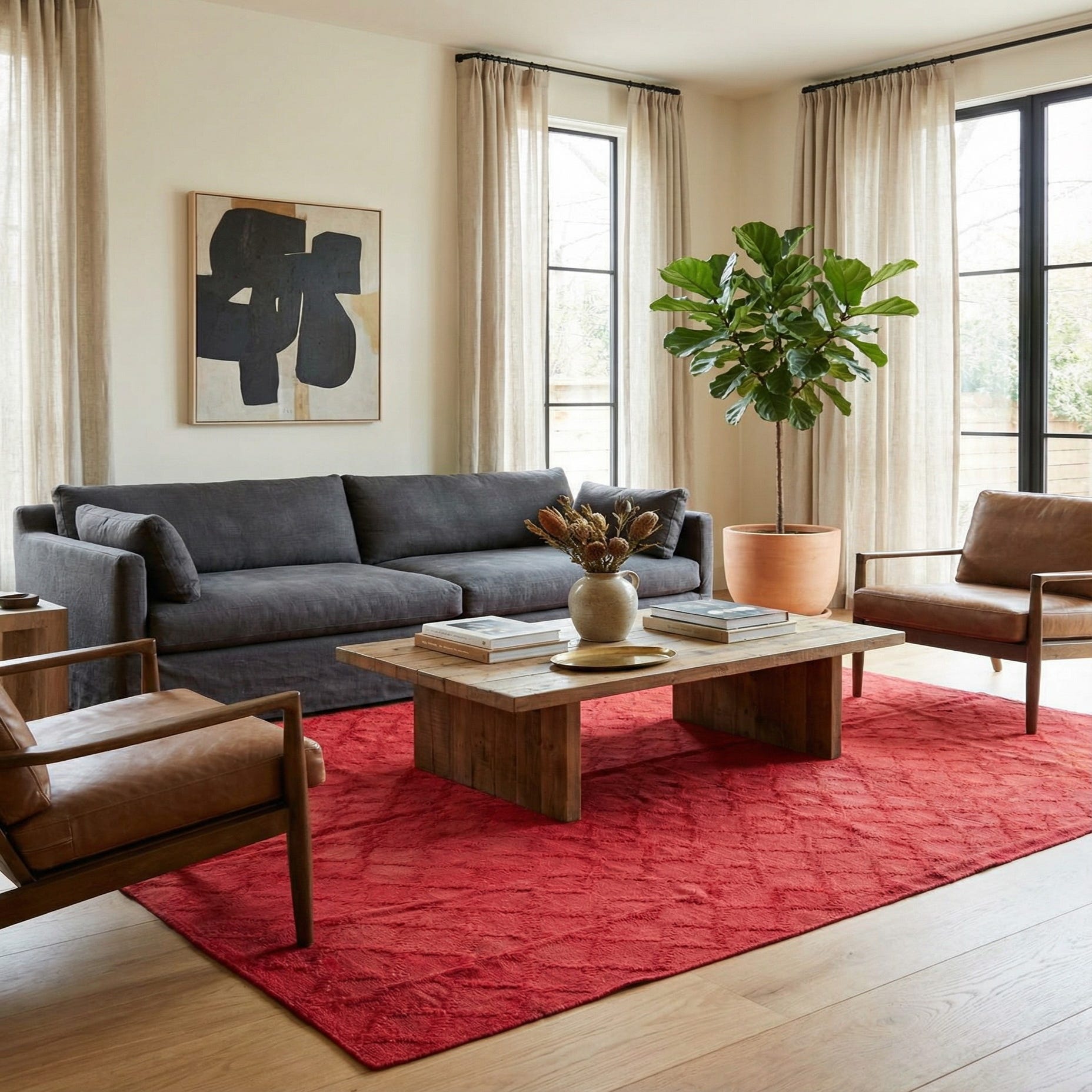 Primary color is Red. Colors in this rug include: Red, Orange.