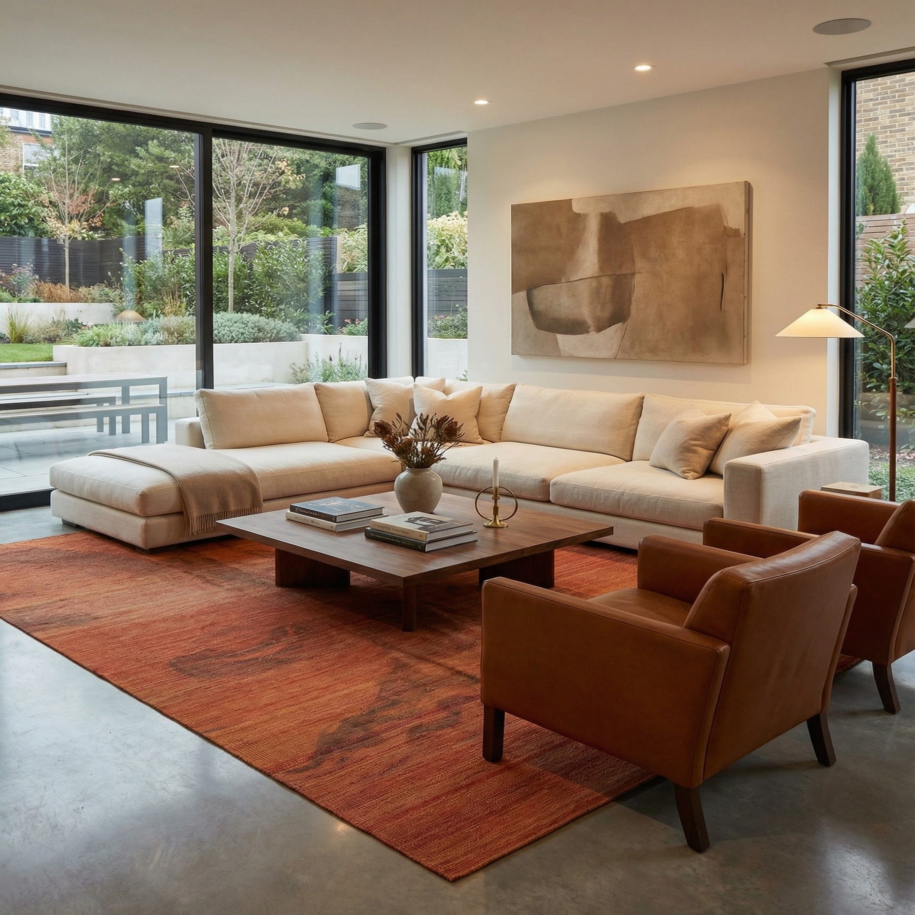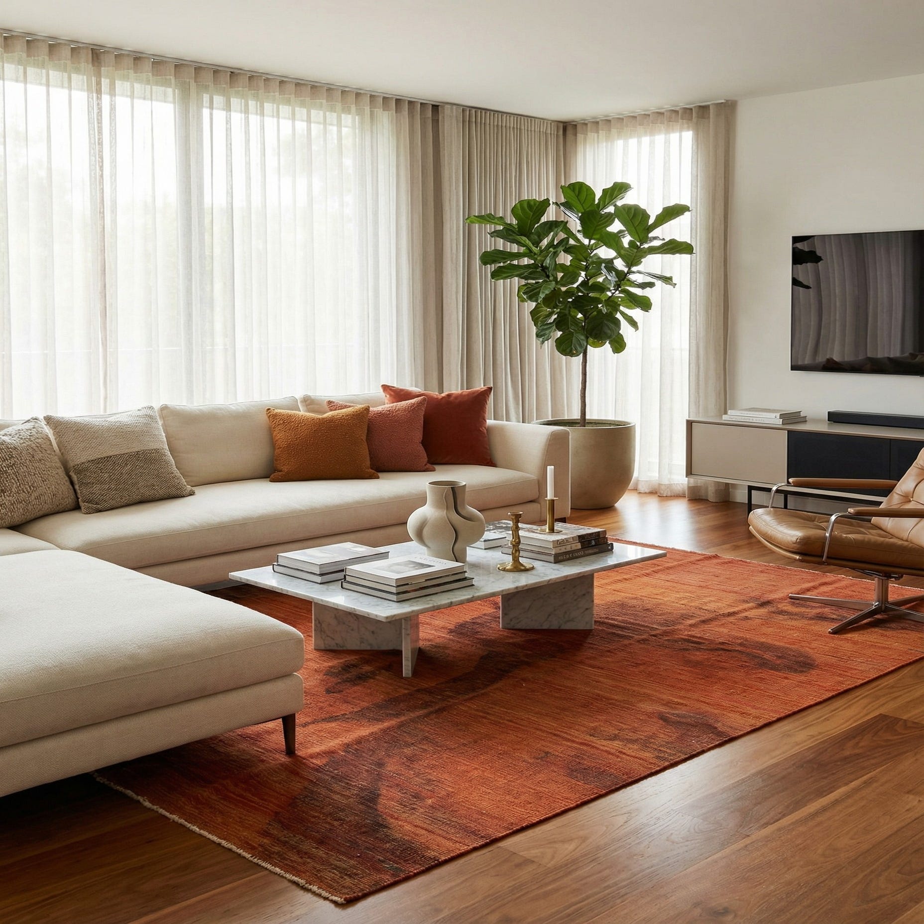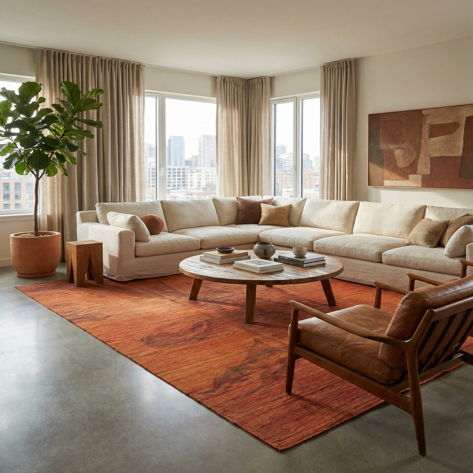 Primary color is Red. Colors in this rug include: Red, Beige, Brown.