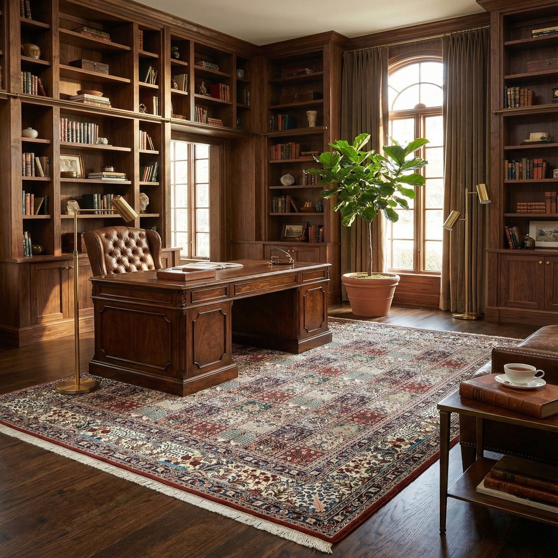 Primary color is Red. Colors in this rug include: Red, Red, Beige, Dark Blue, Blue, Brown, Grey, Green.