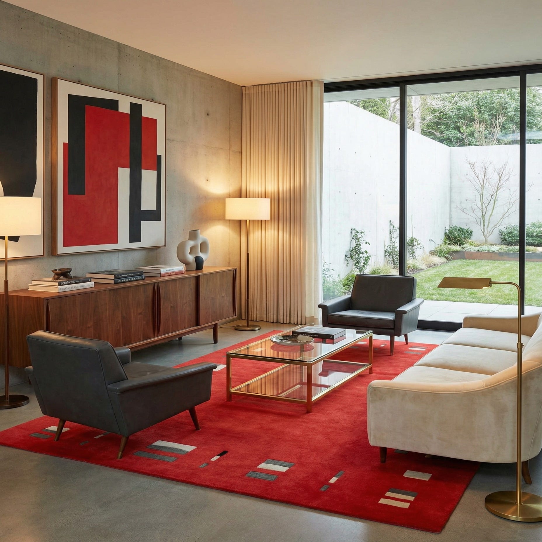 Primary color is Red. Colors in this rug include: Red, Black, Gray.