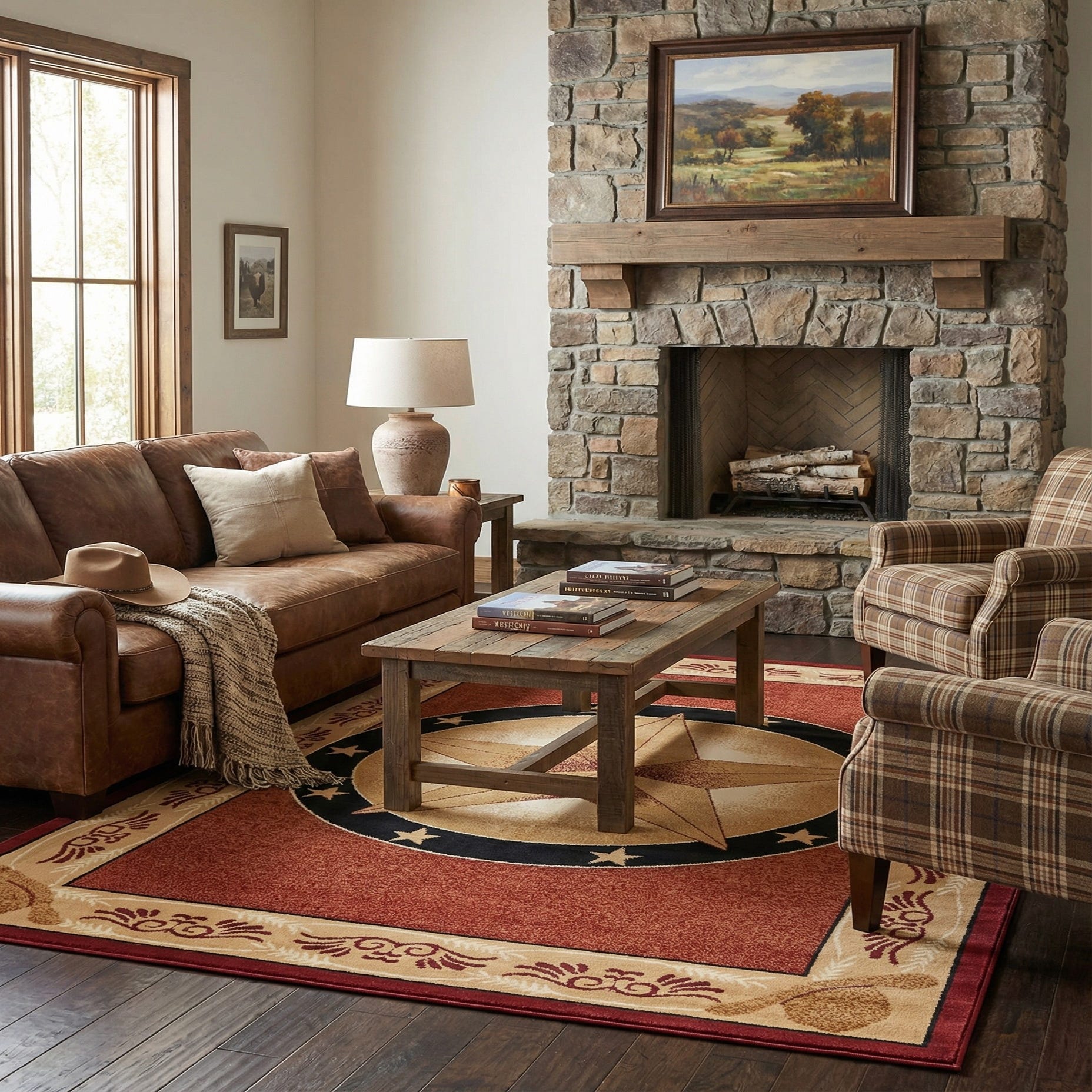 Primary color is Red. Colors in this rug include: Red, Beige, Black, Brown, Ivory.
