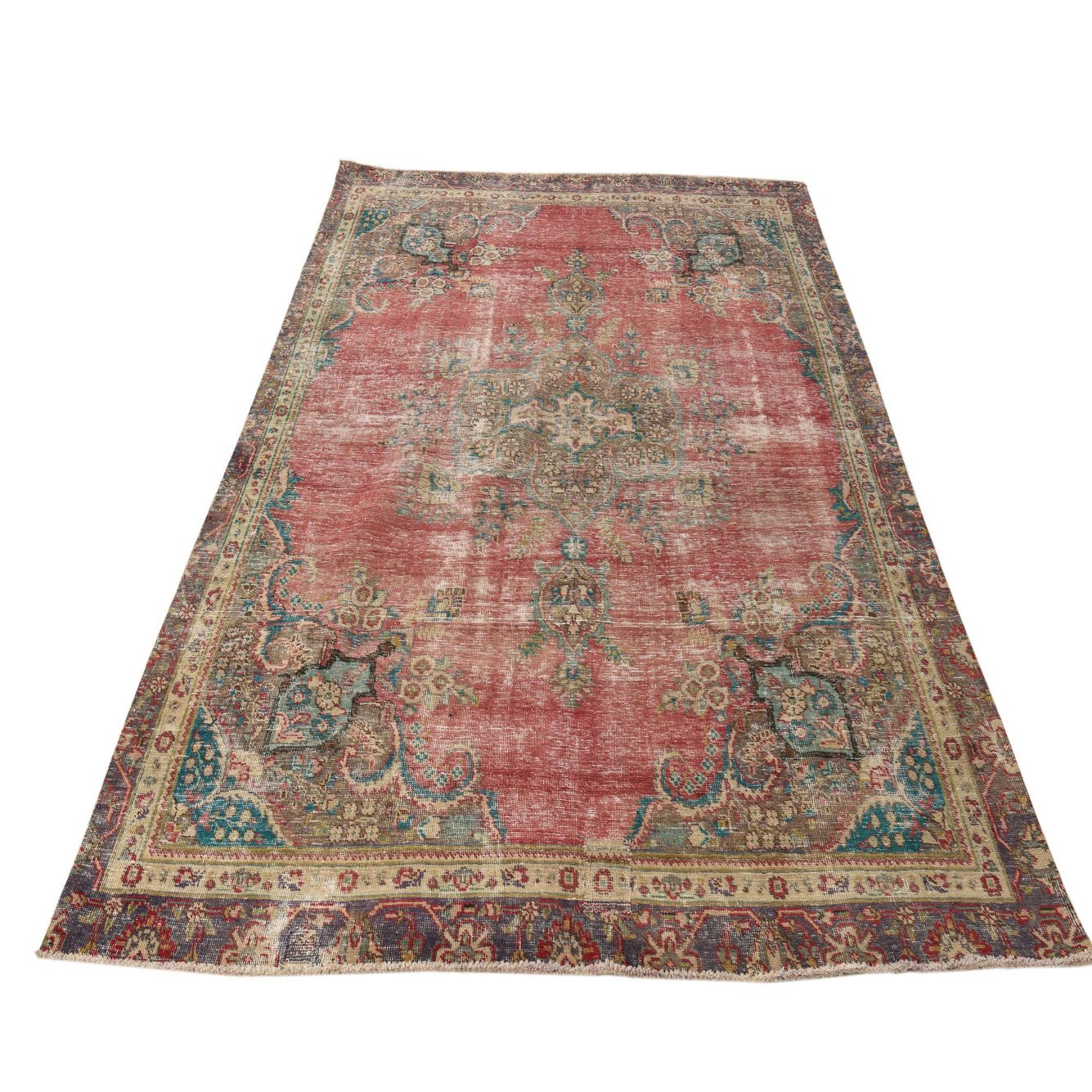 This Persian Ultra Vintage rug is an antique Persian Rug that has been washed, over-dyed, and then shaved down to a low pile. Look at the detail pictures to fully appreciate the uniqueness of this piece.