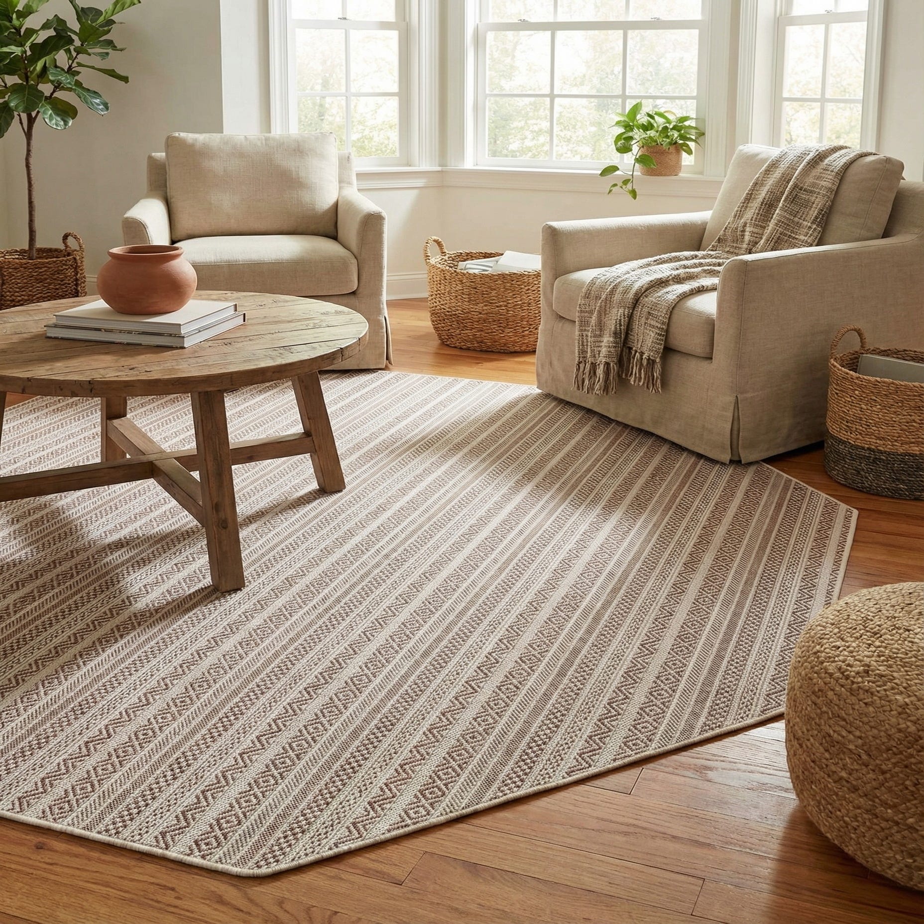 7' 10 x 7' 10 Washable Striped Indoor / Outdoor Octagon Rug