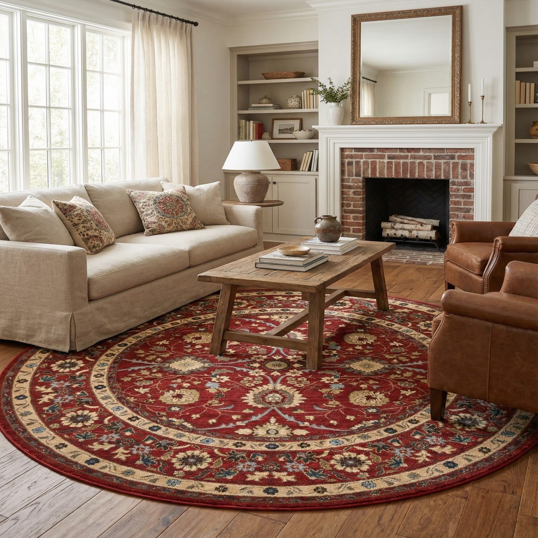 Primary color is Red. Colors in this rug include: Red, Beige, Blue, Brown, Green, Light Blue, Olive, Light Green.