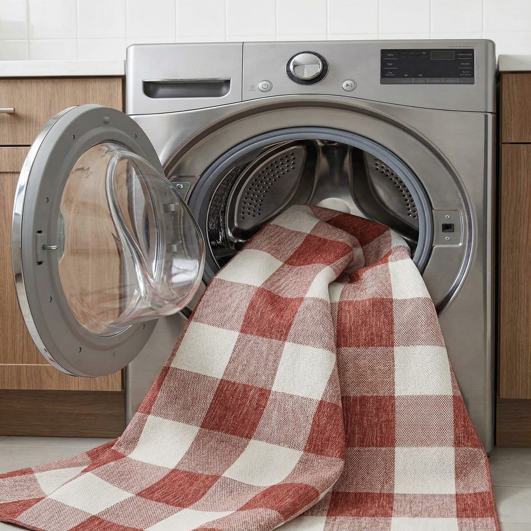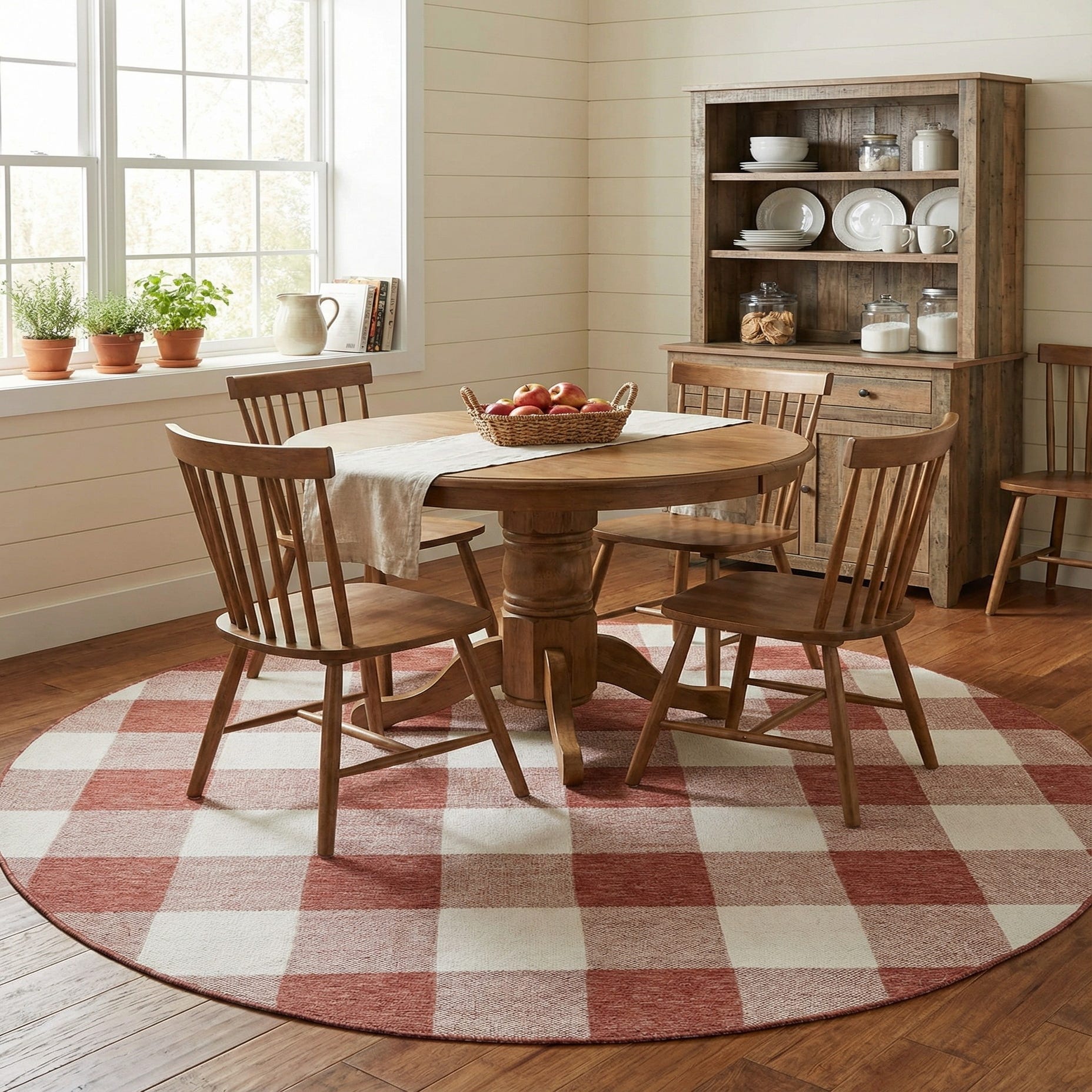 7' 10 x 7' 10 Washable Checkered Indoor / Outdoor Round Rug