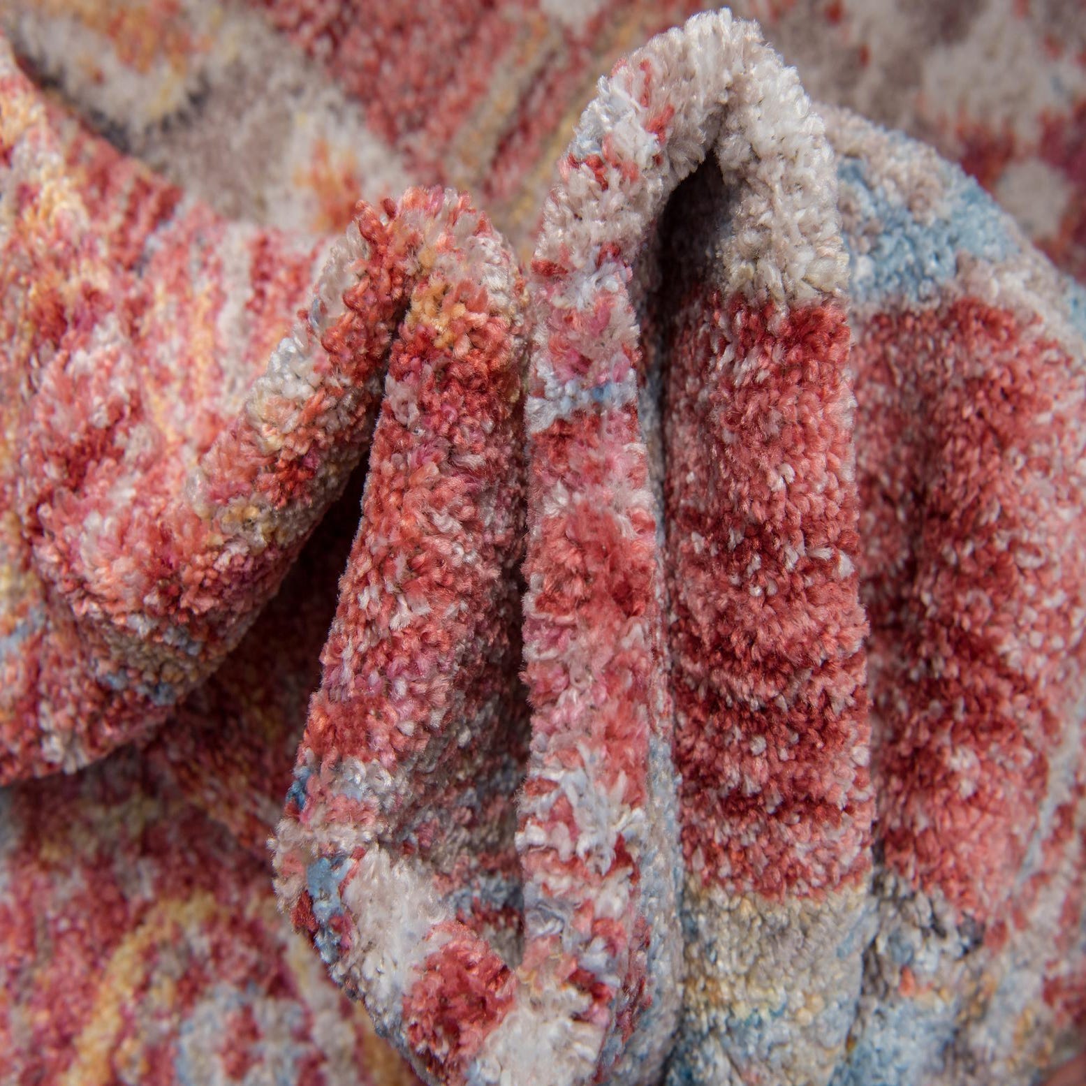 Primary color is Red. Colors in this rug include: Red, Beige, Blue, Gold, Green, Ivory, Pink.