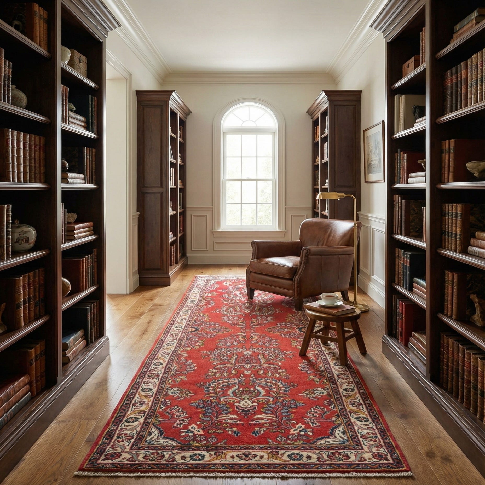 Primary color is Red. Colors in this rug include: Red, Cream, Blue, Brown, Beige.