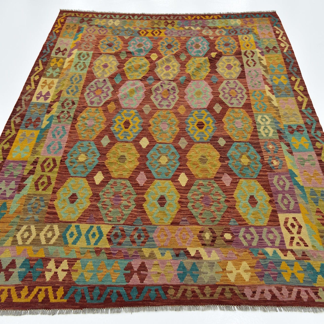 7' x 8' 2 Hand Woven Kilim Maymana Wool Square Rug