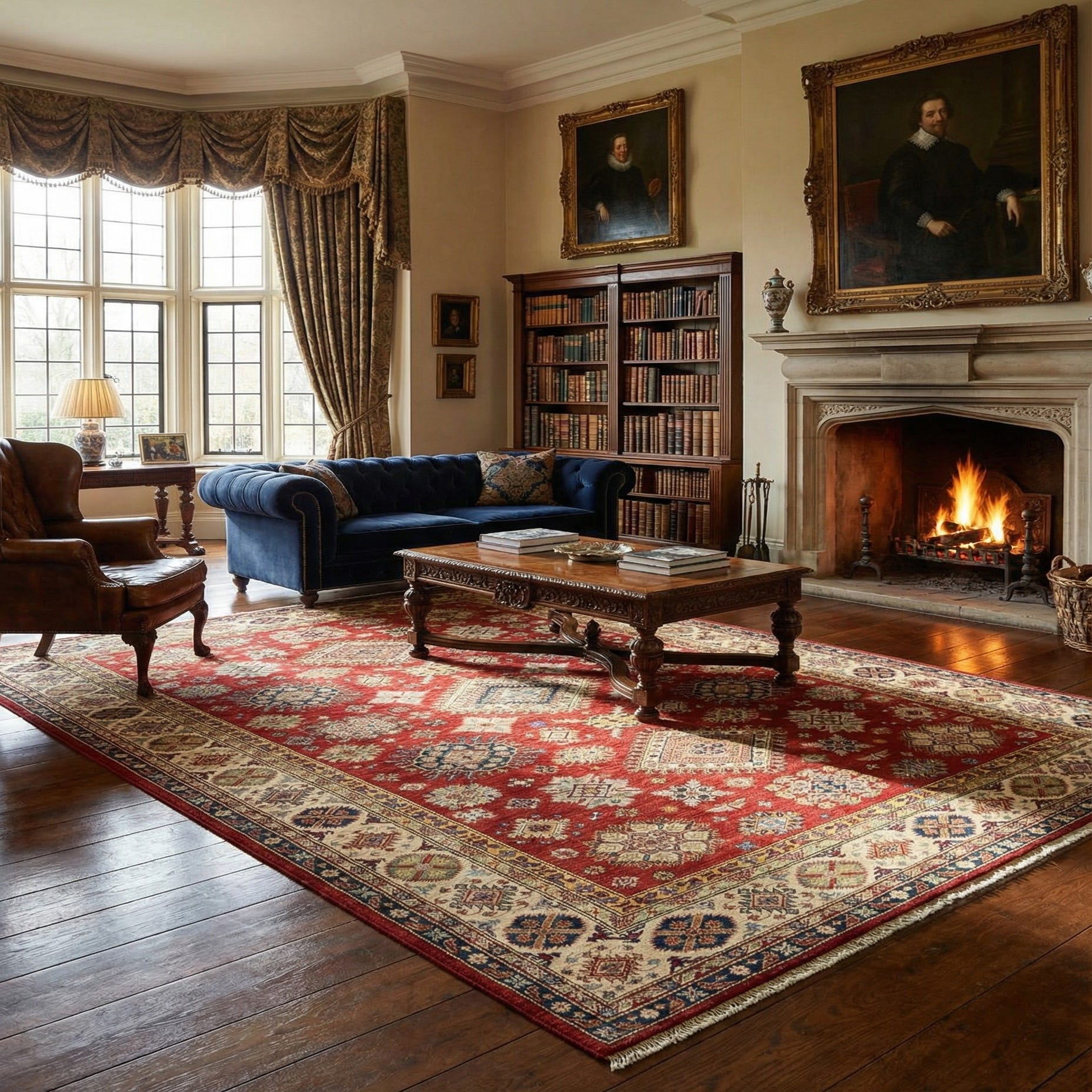 Primary color is Red. Colors in this rug include: Red, Red, Beige, Blue, Orange, Cream.