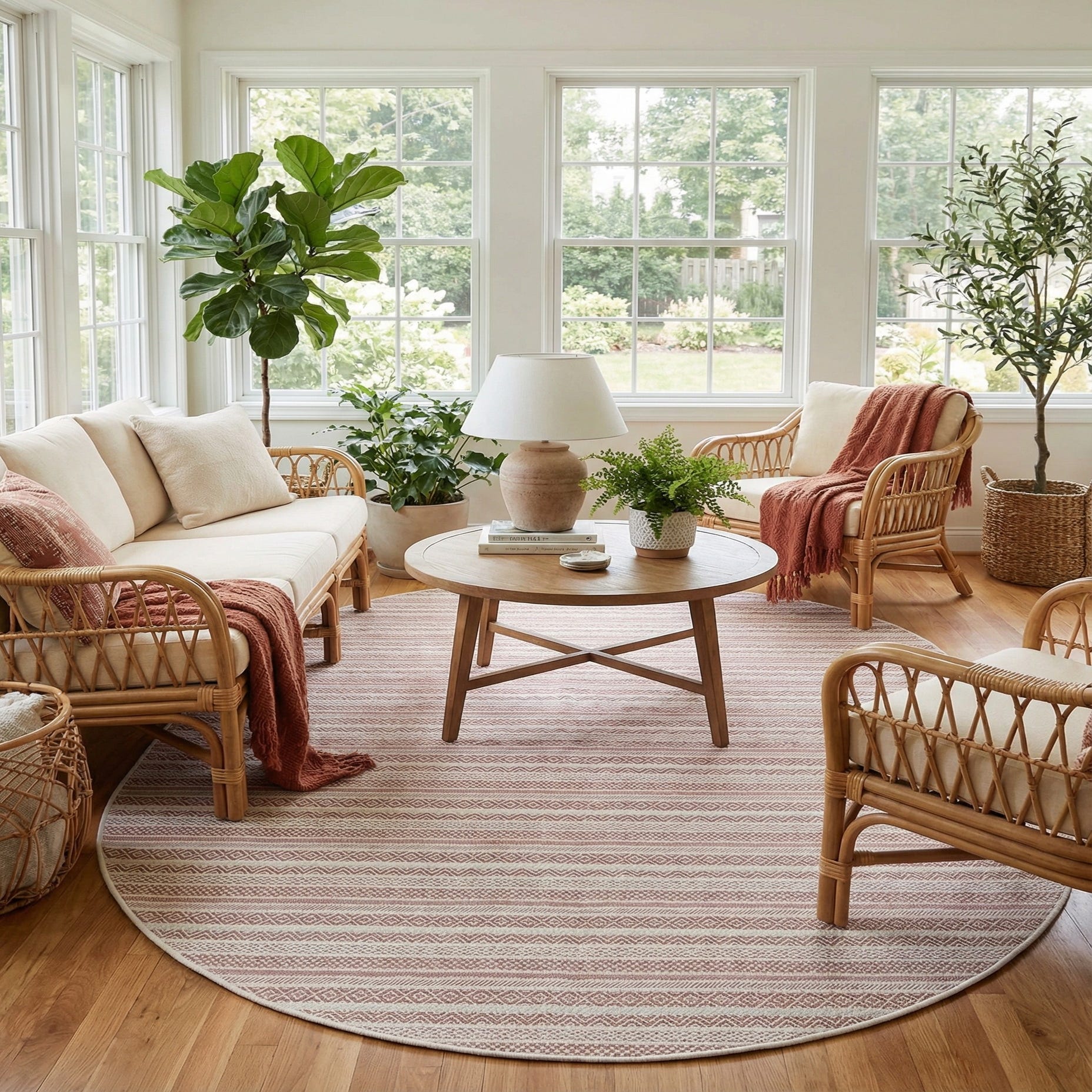 7' 10 x 10' Washable Striped Indoor / Outdoor Oval Rug
