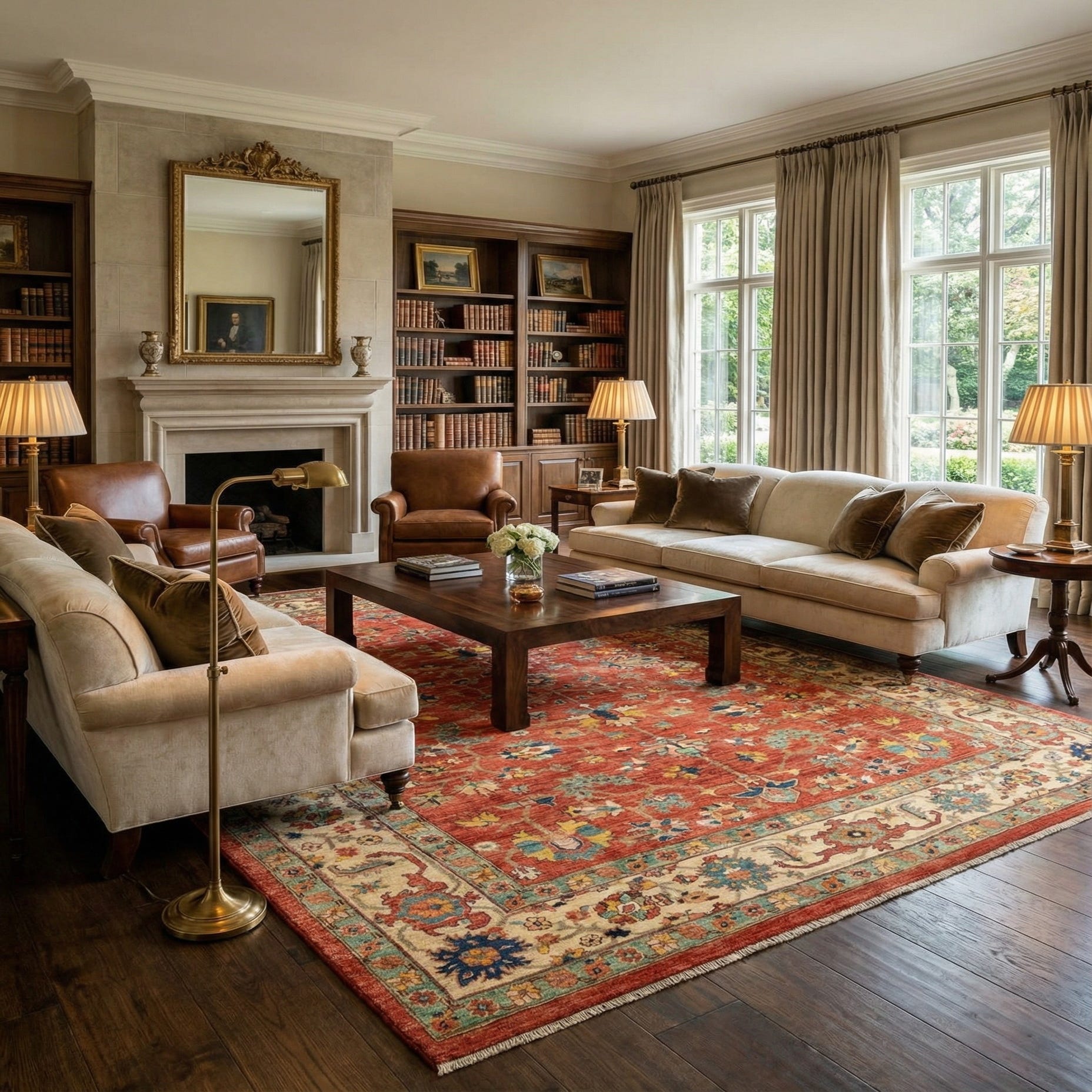 Primary color is Red. Colors in this rug include: Red, Red, Beige, Green, Blue, Dark Blue, Yellow, Brown.