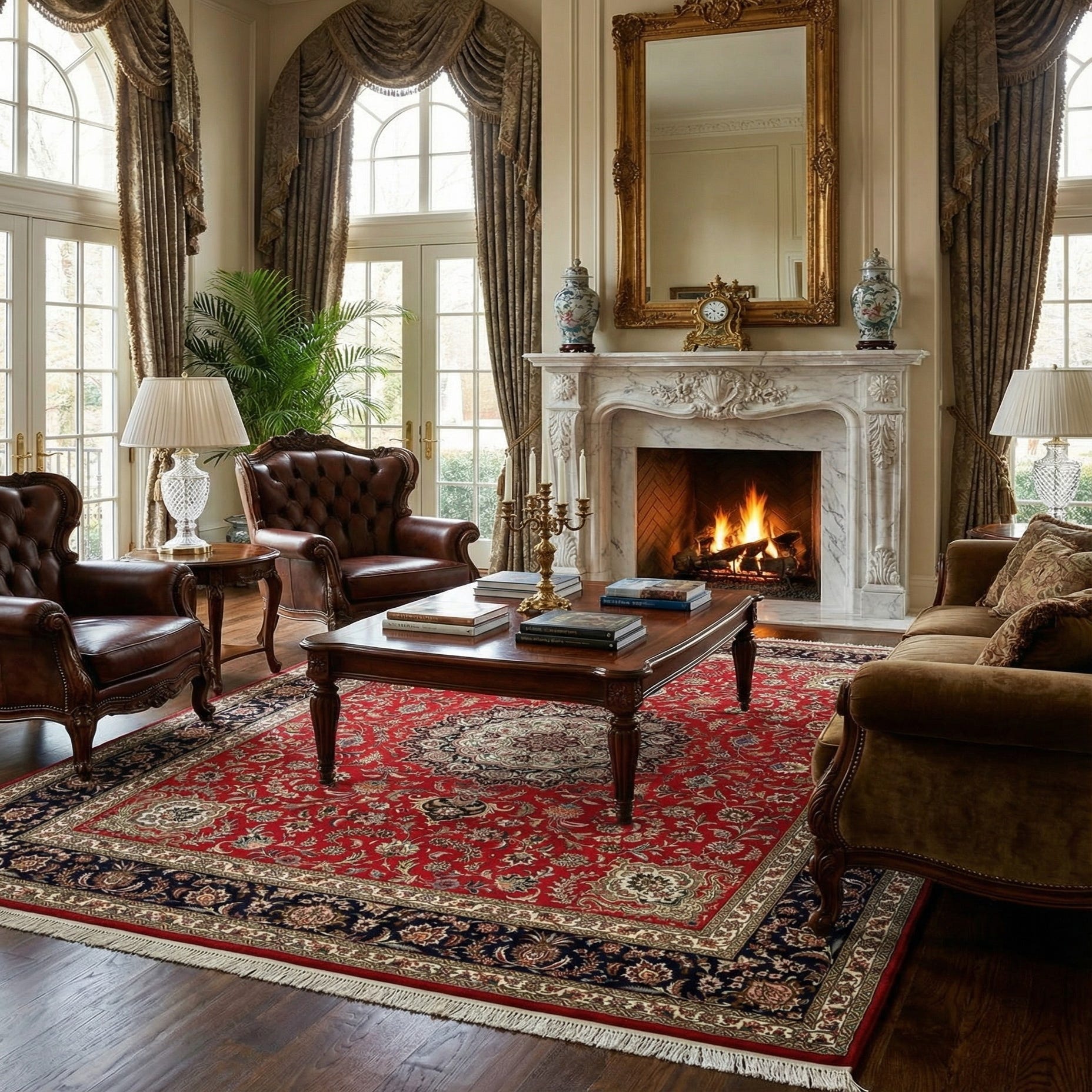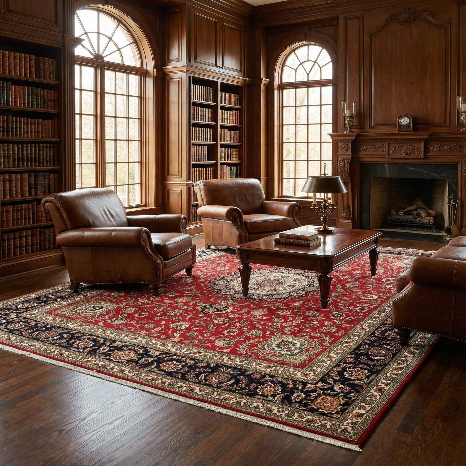 Primary color is Red. Colors in this rug include: Red, Red, Dark Blue, Cream, Olive, Brown, Orange, Blue.