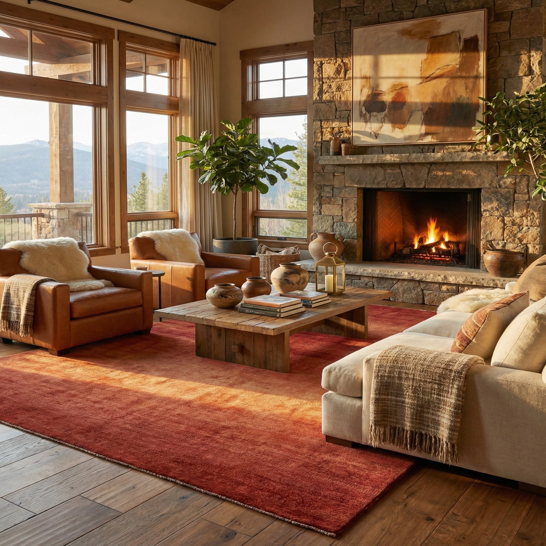 Primary color is Red. Colors in this rug include: Red, Language: en