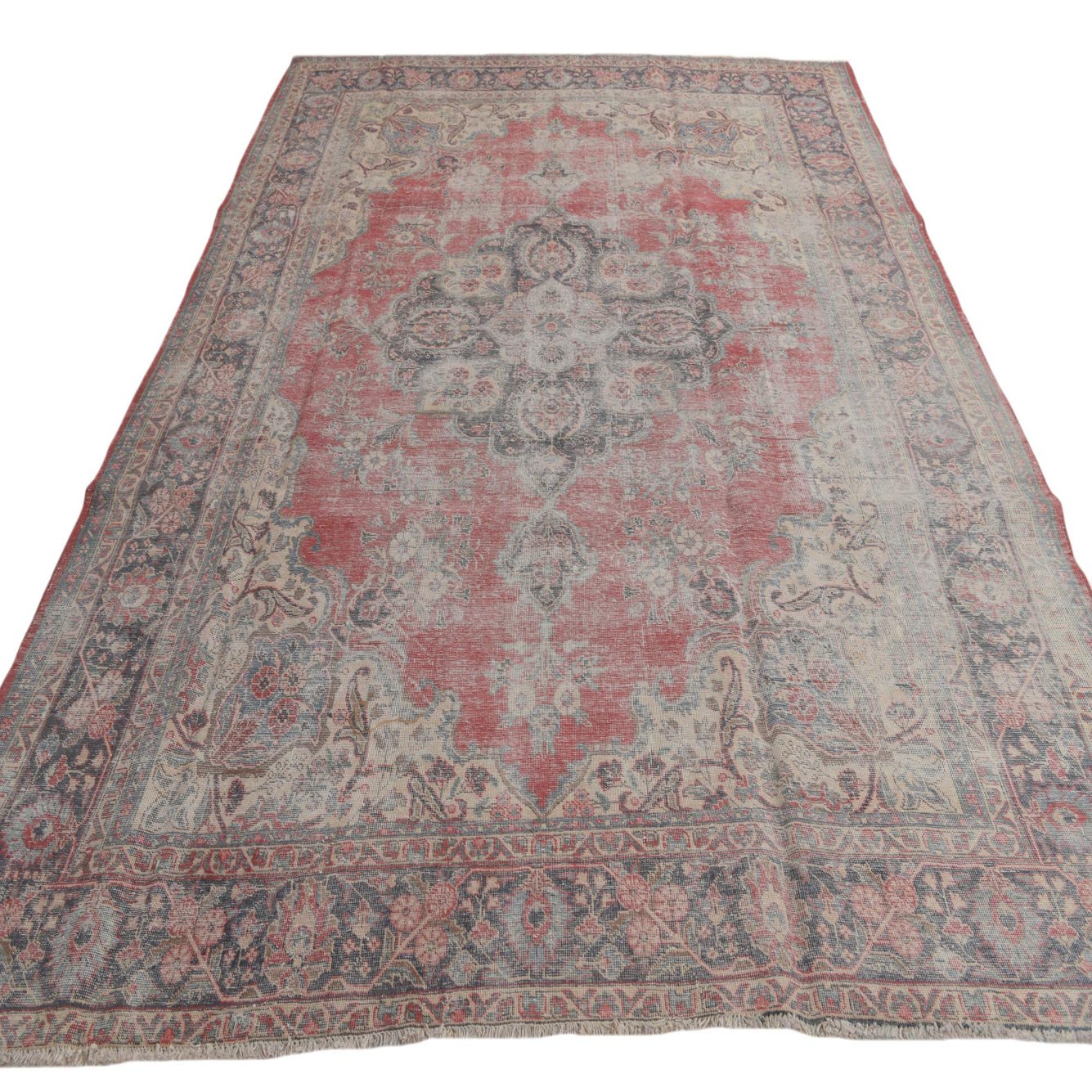 This Persian Ultra Vintage rug is an antique Persian Rug that has been washed, over-dyed, and then shaved down to a low pile. Look at the detail pictures to fully appreciate the uniqueness of this piece.