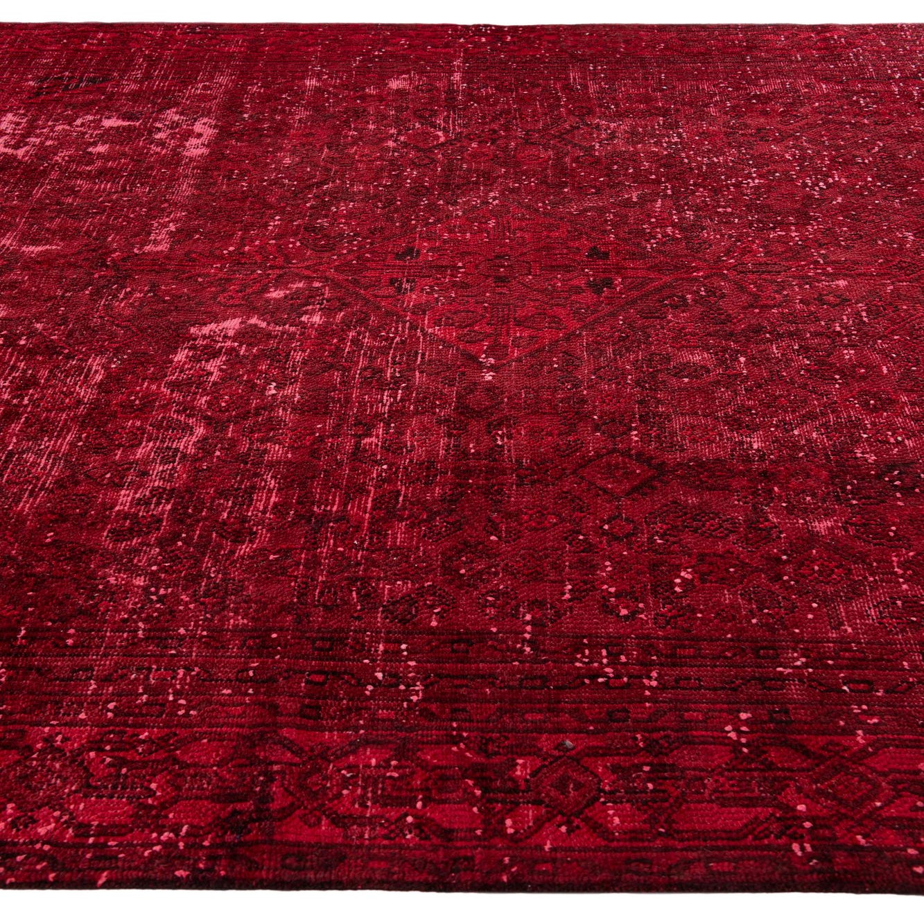 This Persian Ultra Vintage rug is an antique Persian Rug that has been washed, over-dyed, and then shaved down to a low pile. Look at the detail pictures to fully appreciate the uniqueness of this piece.