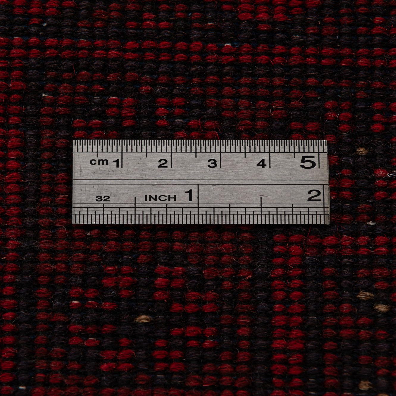 Primary color is Red. Colors in this rug include: Red, Brown, Black.