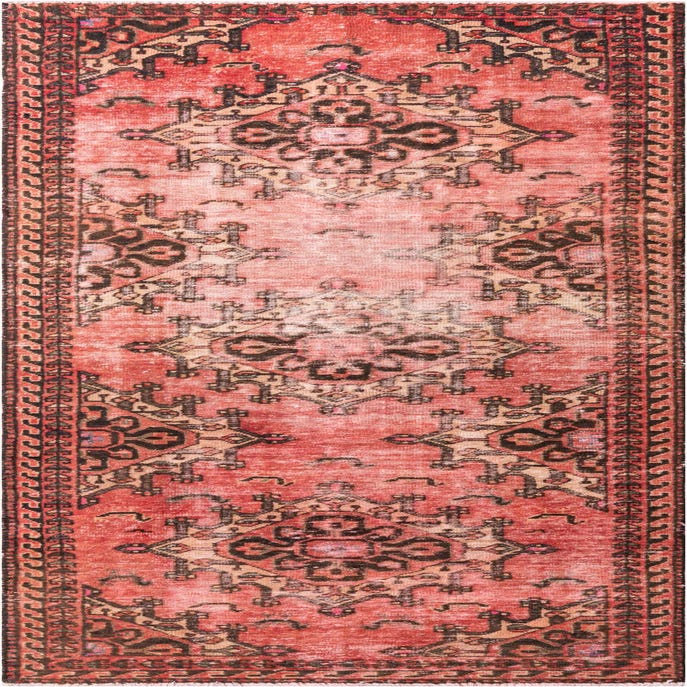 This Persian Ultra Vintage rug is an antique Persian Rug that has been washed, over-dyed, and then shaved down to a low pile. Look at the detail pictures to fully appreciate the uniqueness of this piece.