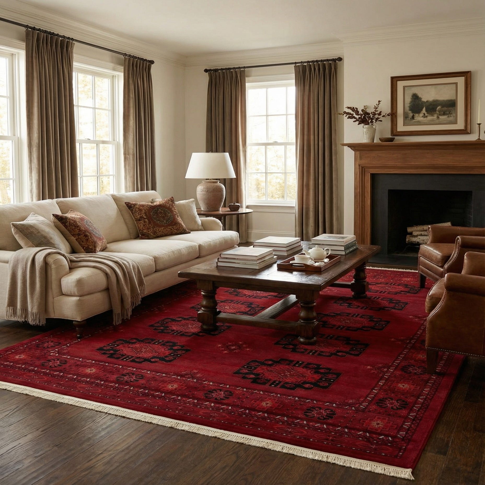 Primary color is Red. Colors in this rug include: Red, Black, Cream, Terracotta.