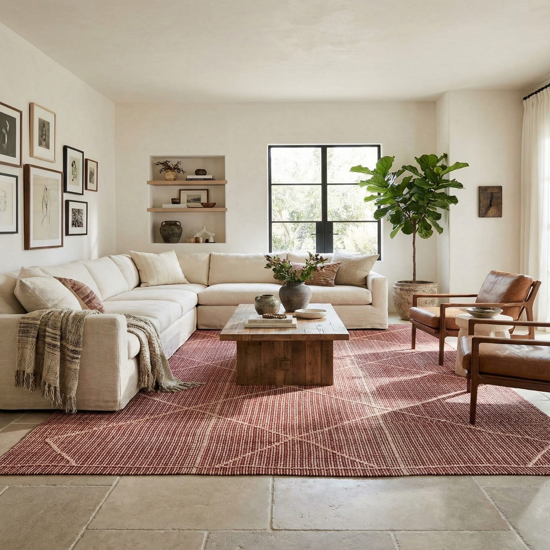 Primary color is Red. Colors in this rug include: Red, Ivory.