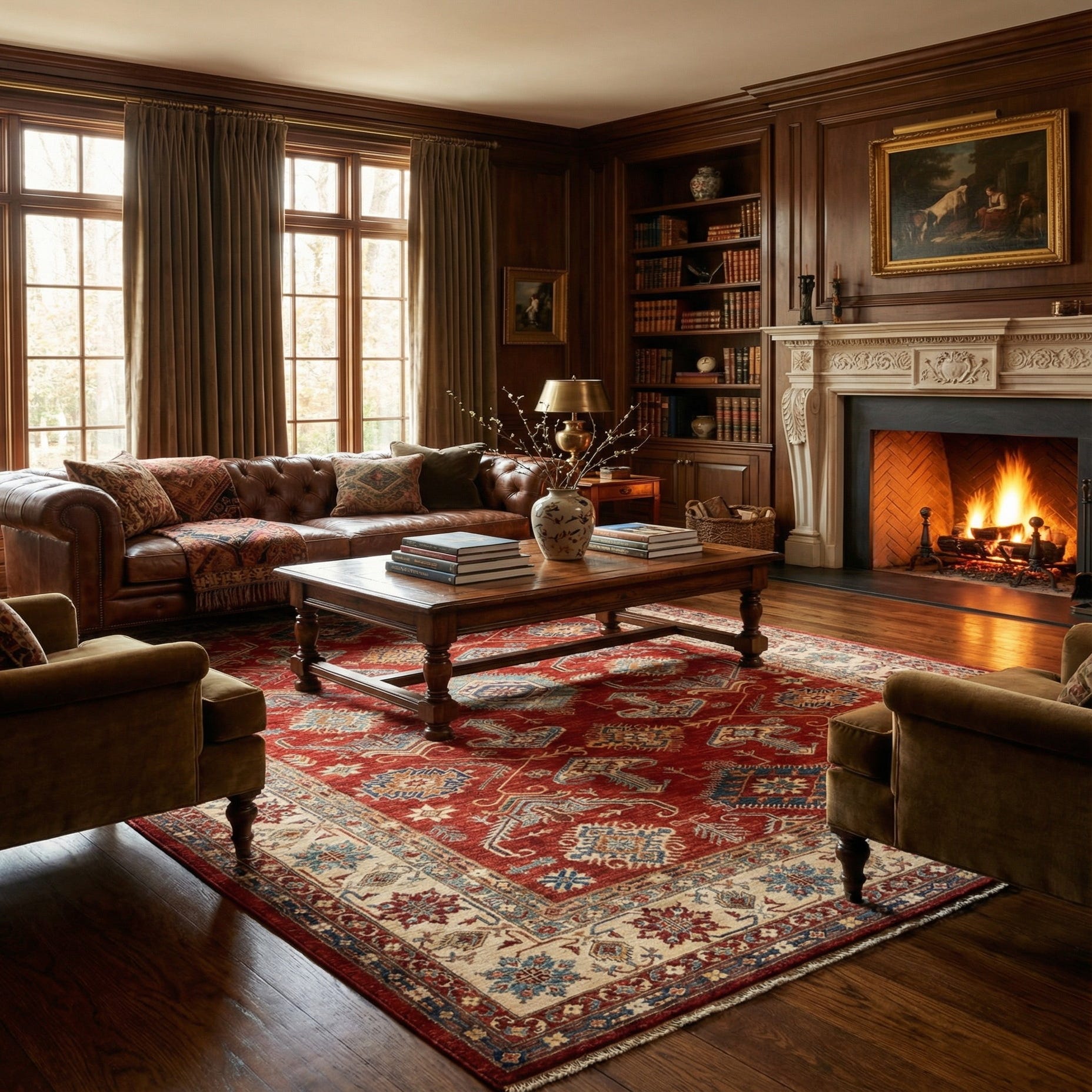• Forest green linen wingback chair
