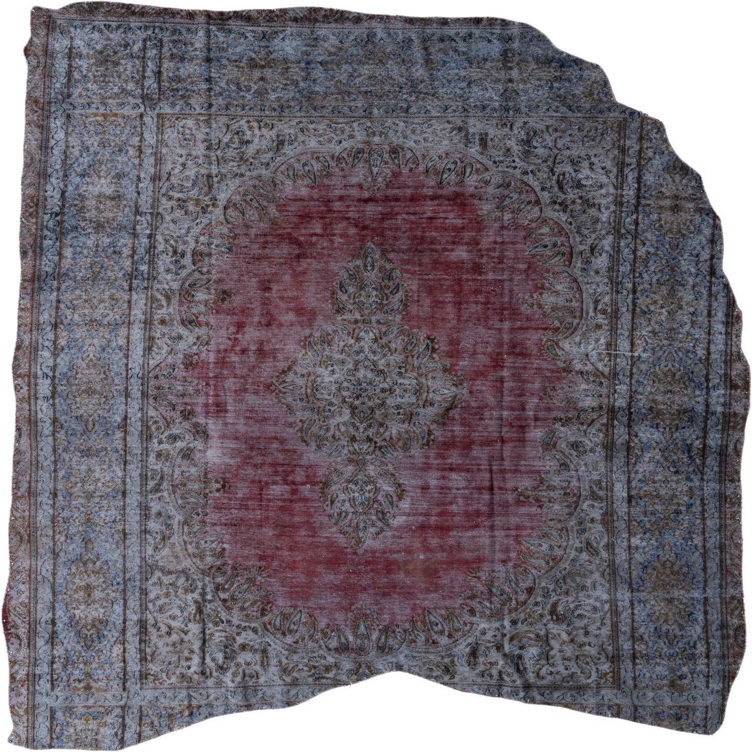 This Persian Ultra Vintage rug is an antique Persian Rug that has been washed, over-dyed, and then shaved down to a low pile. Look at the detail pictures to fully appreciate the uniqueness of this piece.