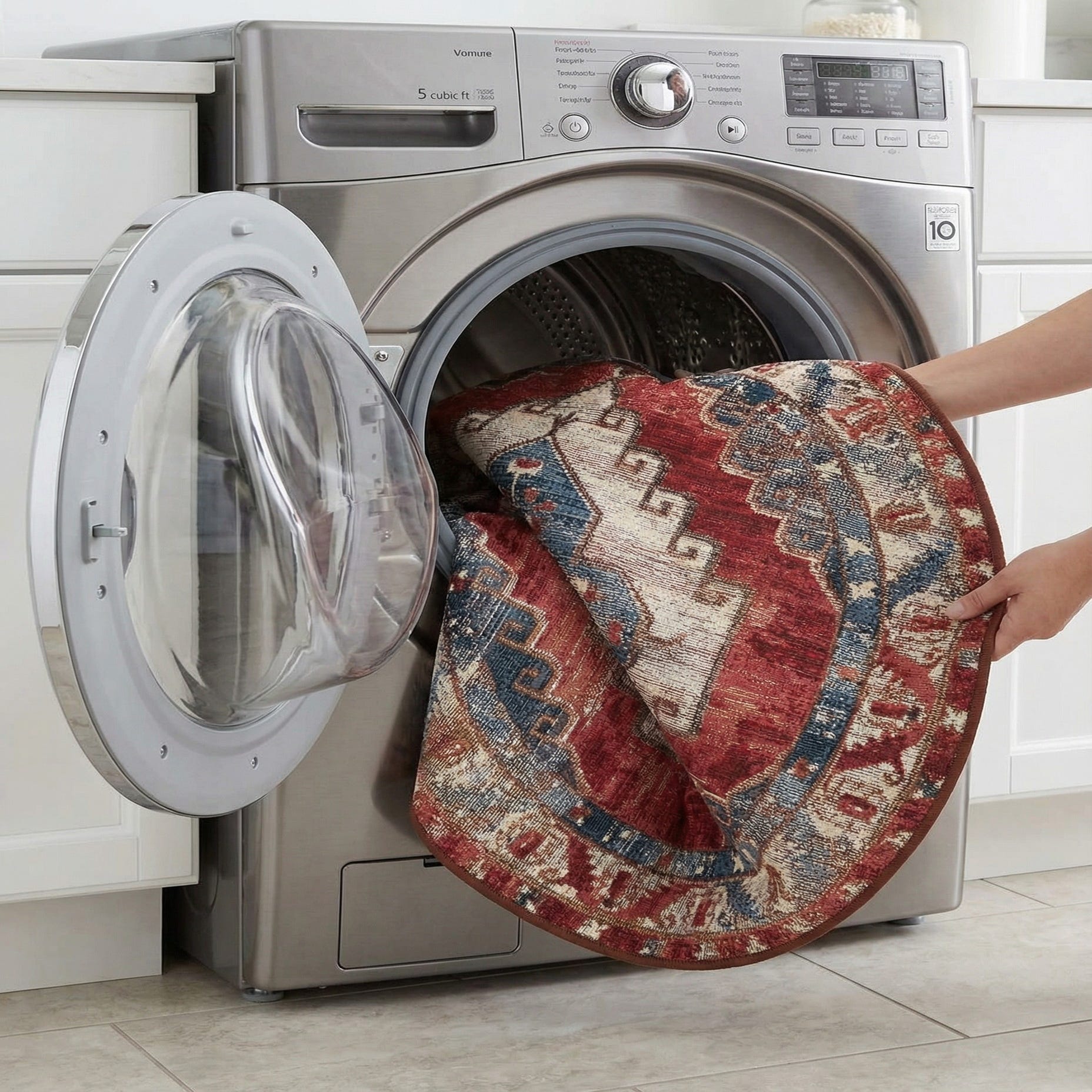 Primary image 3' x 3'  Washable Traditional Indoor / Outdoor Round Rug