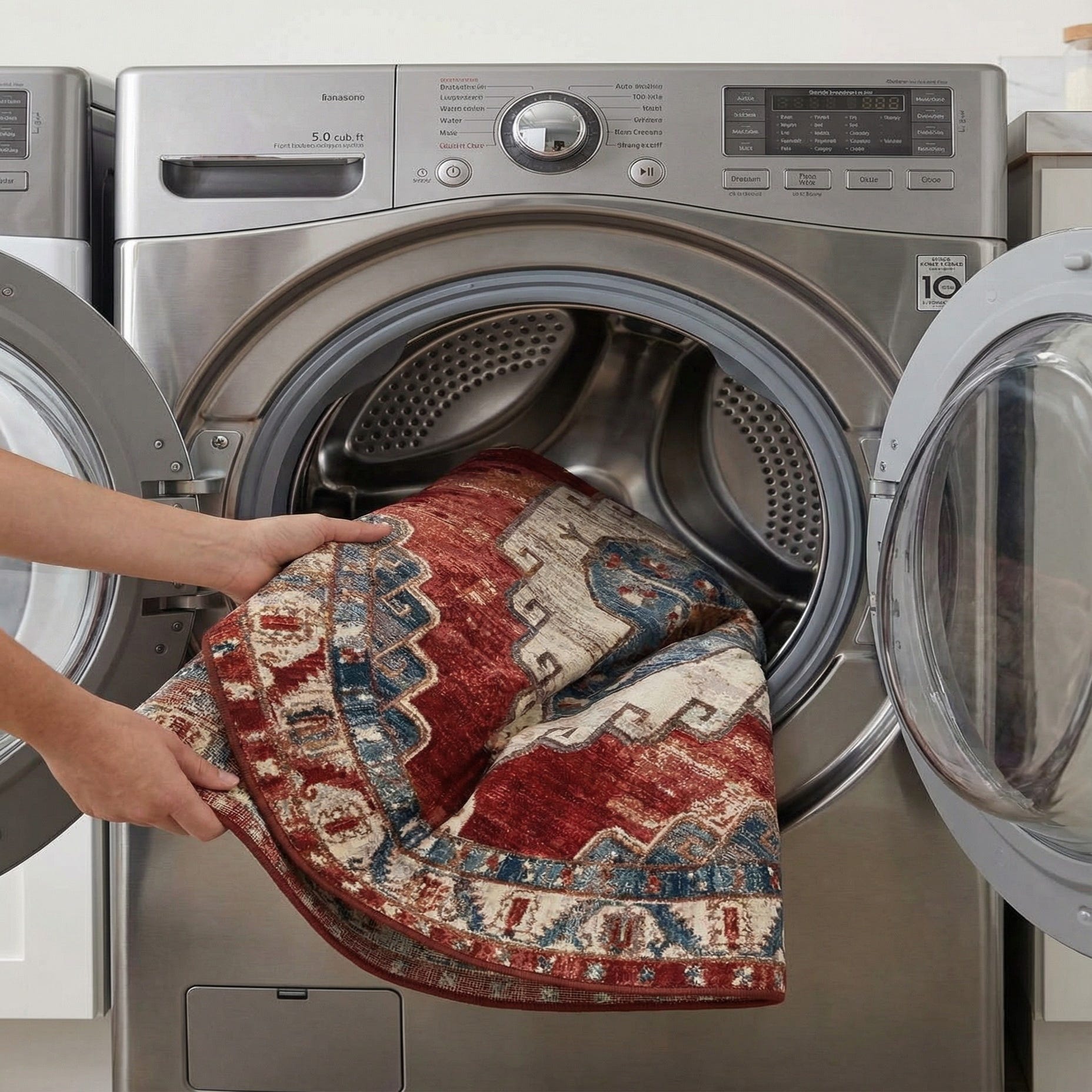 Primary image 7' 10 x 7' 10  Washable Traditional Indoor / Outdoor Round Rug