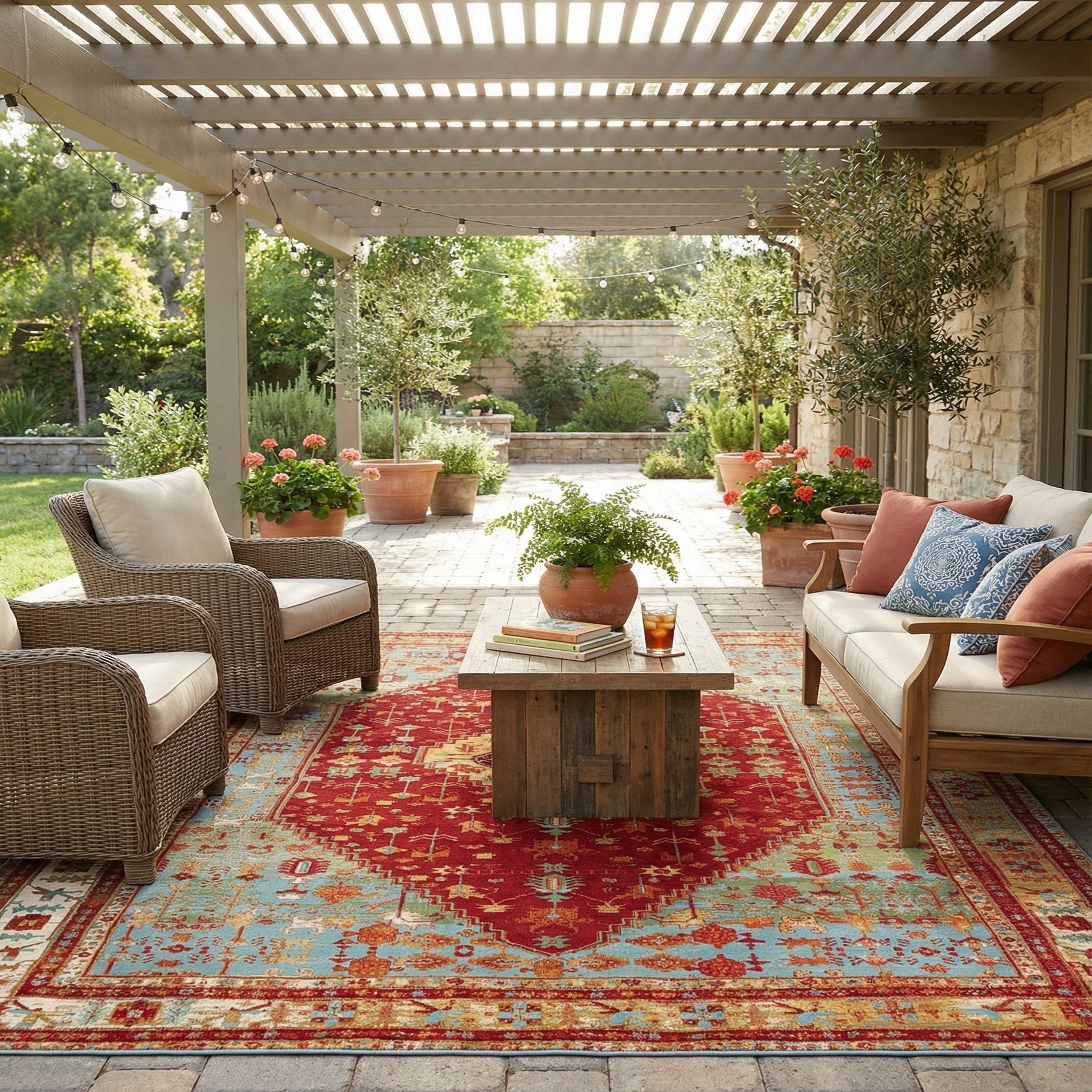9' x 12' Washable Traditional Indoor / Outdoor Rug