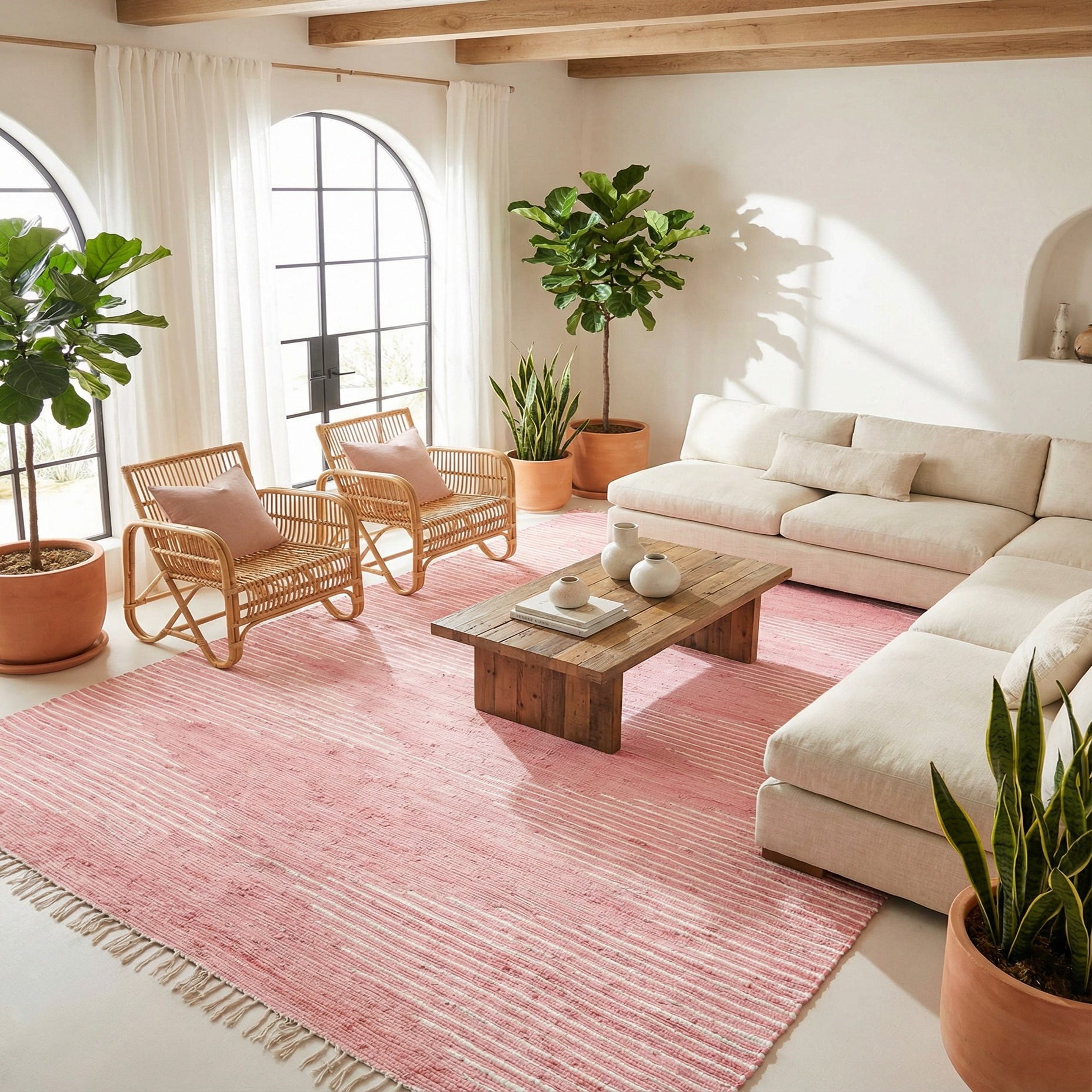 Primary color is Rose. Colors in this rug include: Rose, Ivory.