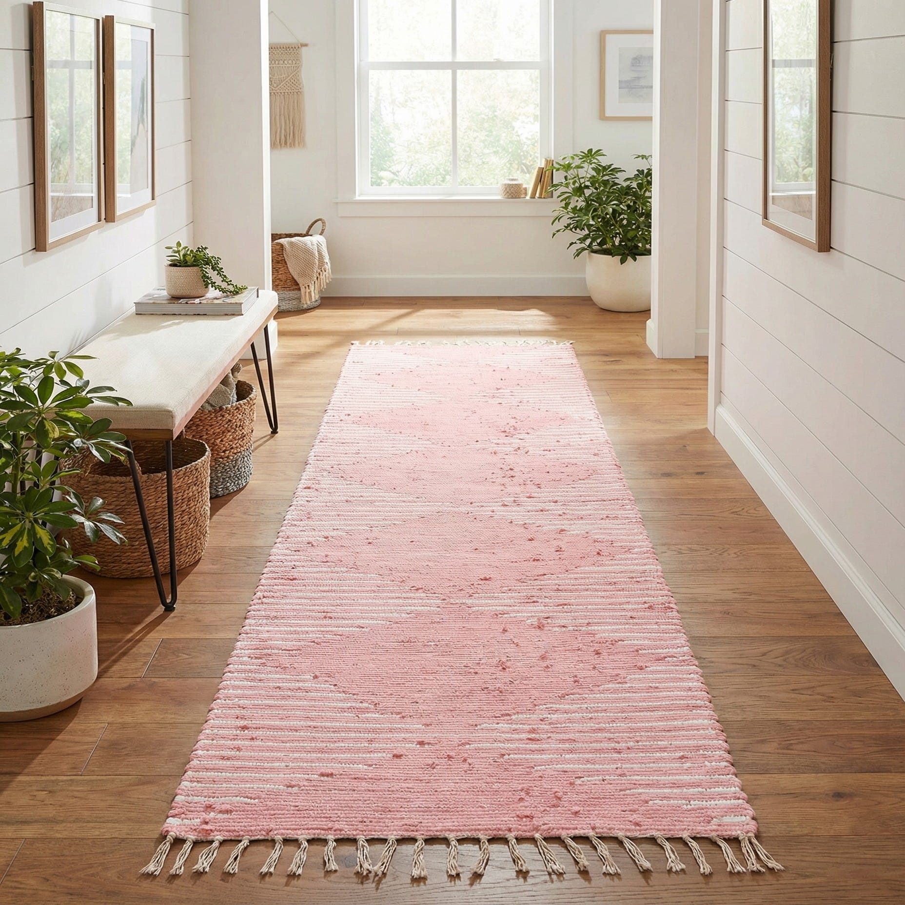 Primary color is Rose. Colors in this rug include: Rose, Ivory.