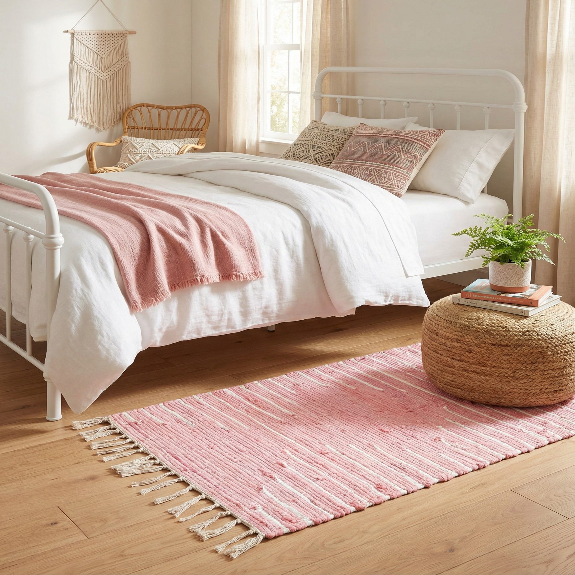 Primary color is Rose. Colors in this rug include: Rose, Ivory.