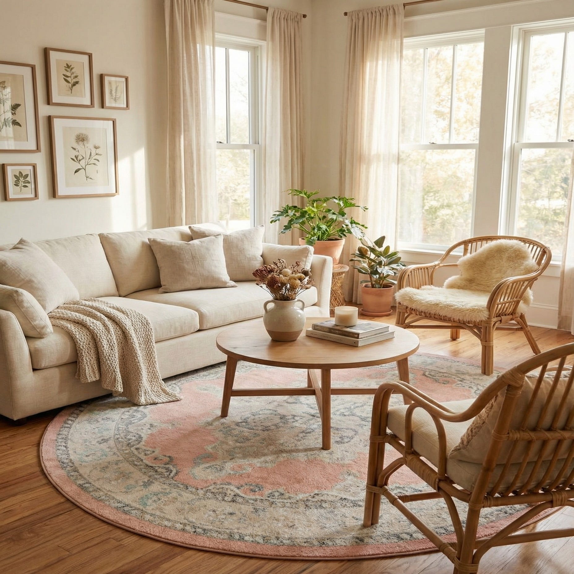 Primary color is Rose. Colors in this rug include: Rose, Gray, Light Green, Beige, Ivory.