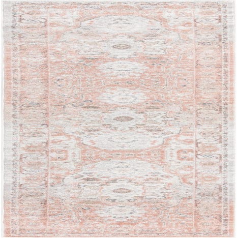 Primary color is Rose Pink. Colors in this rug include: Rose Pink, Ivory, Gray.