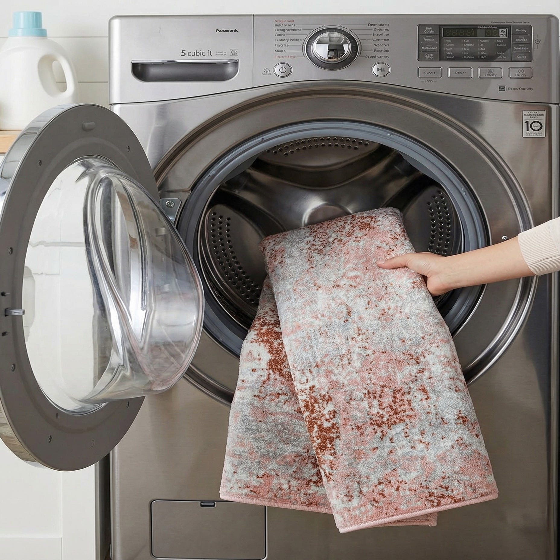 Primary color is Rose Pink. Colors in this rug include: Rose Pink, Ivory.