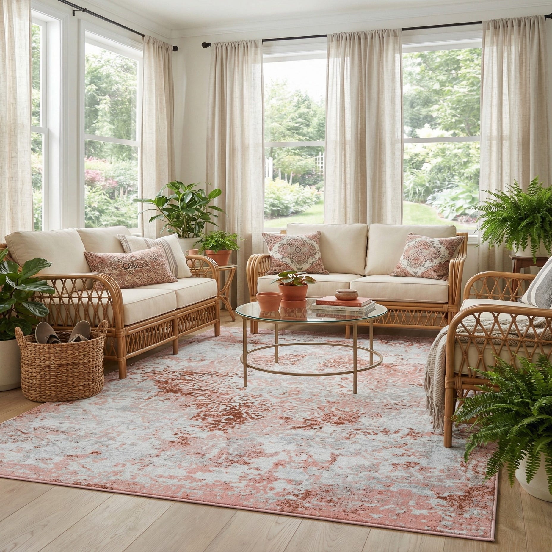 Primary color is Rose Pink. Colors in this rug include: Rose Pink, Ivory.