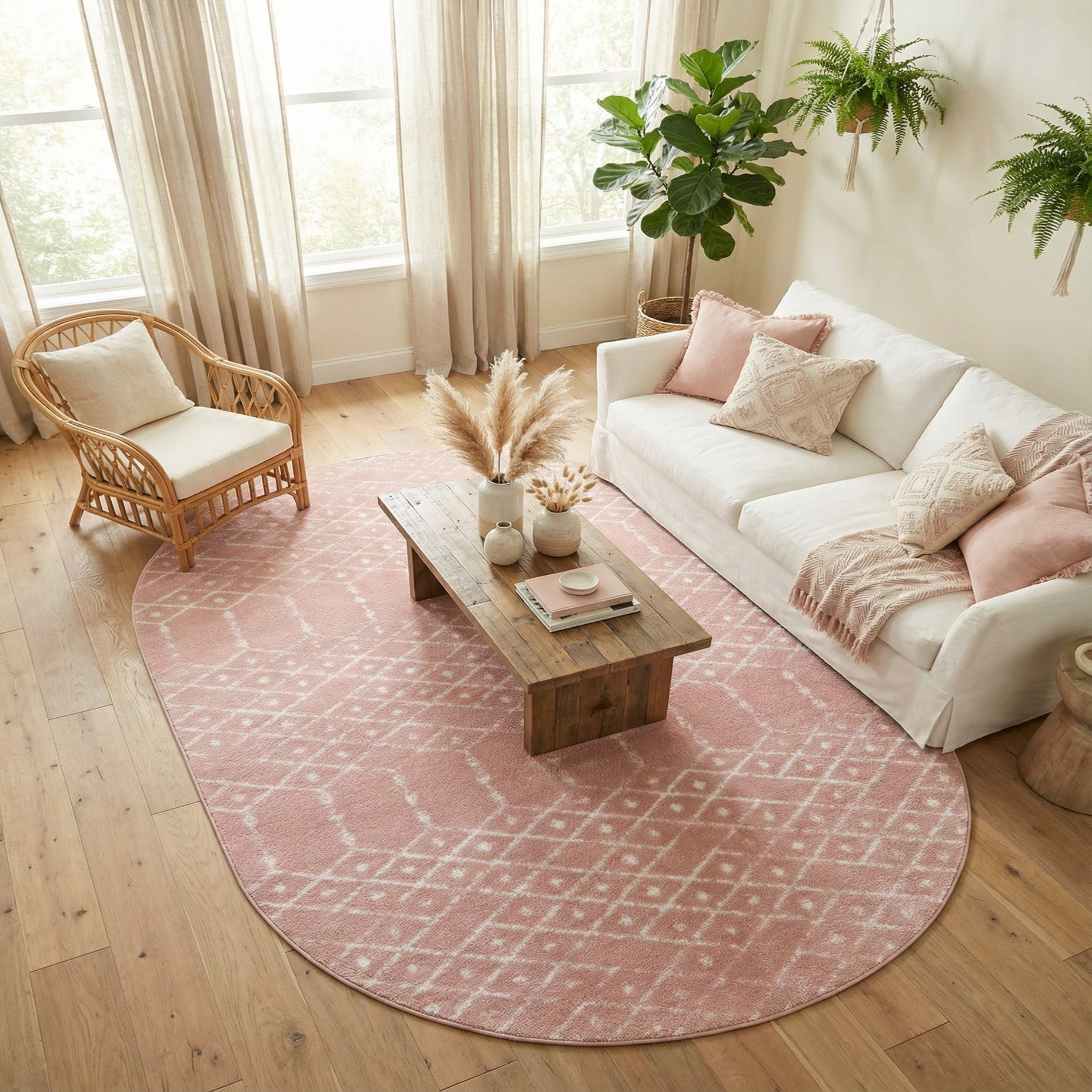Primary color is Rose Pink. Colors in this rug include: Rose Pink, Ivory.