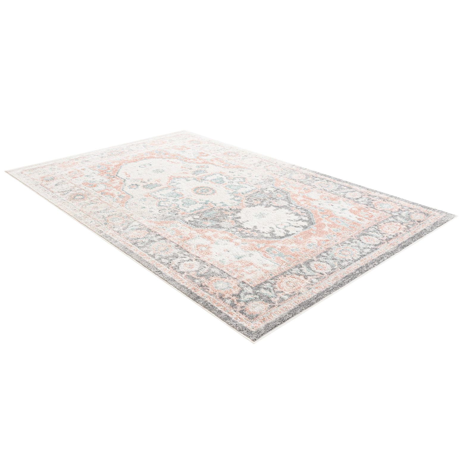 Primary color is Rose Pink and Gray. Colors in this rug include: Rose Pink and Gray, Beige, Ivory, Light Green.