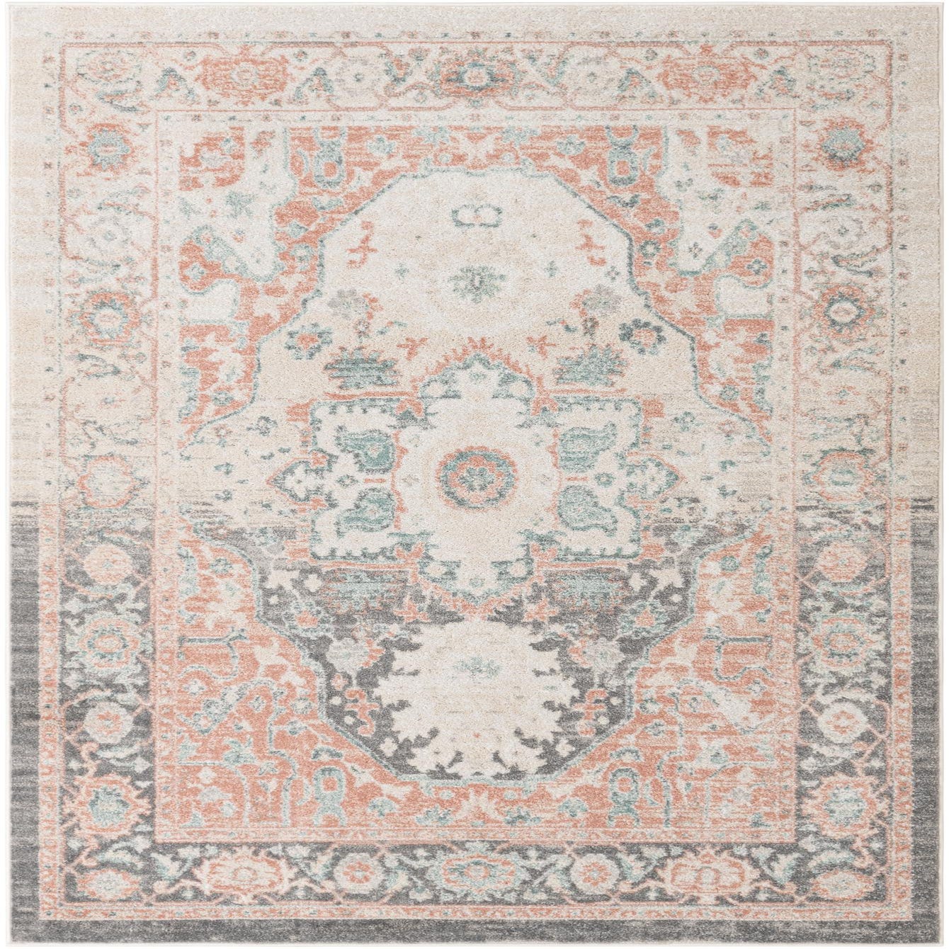 Primary color is Rose Pink and Gray. Colors in this rug include: Rose Pink and Gray, Beige, Ivory.