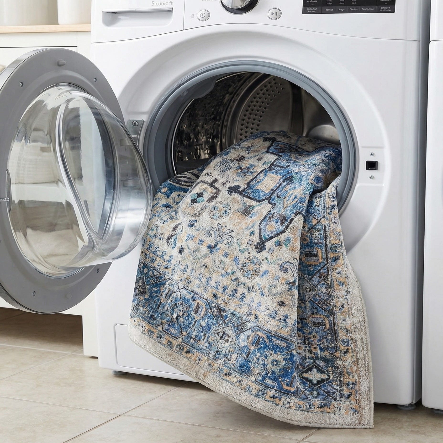 Primary color is Royal Blue. Colors in this rug include: Royal Blue, Black, Blue, Ivory, Light Blue, Navy Blue, Cream.