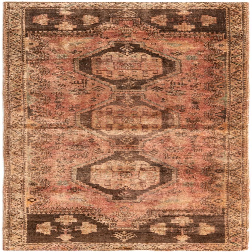 This Persian Ultra Vintage rug is an antique Persian Rug that has been washed, over-dyed, and then shaved down to a low pile. Look at the detail pictures to fully appreciate the uniqueness of this piece.