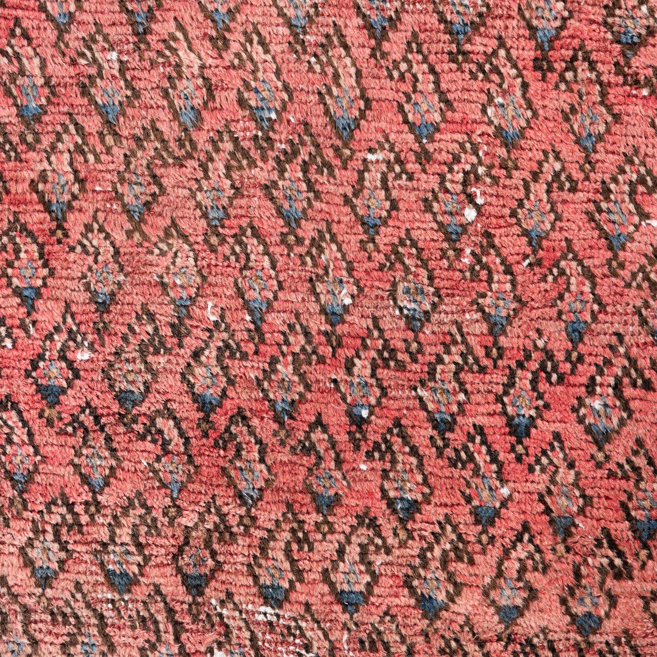 Primary color is Rust Red. Colors in this rug include: Rust Red, Brown, Ivory, Blue.
