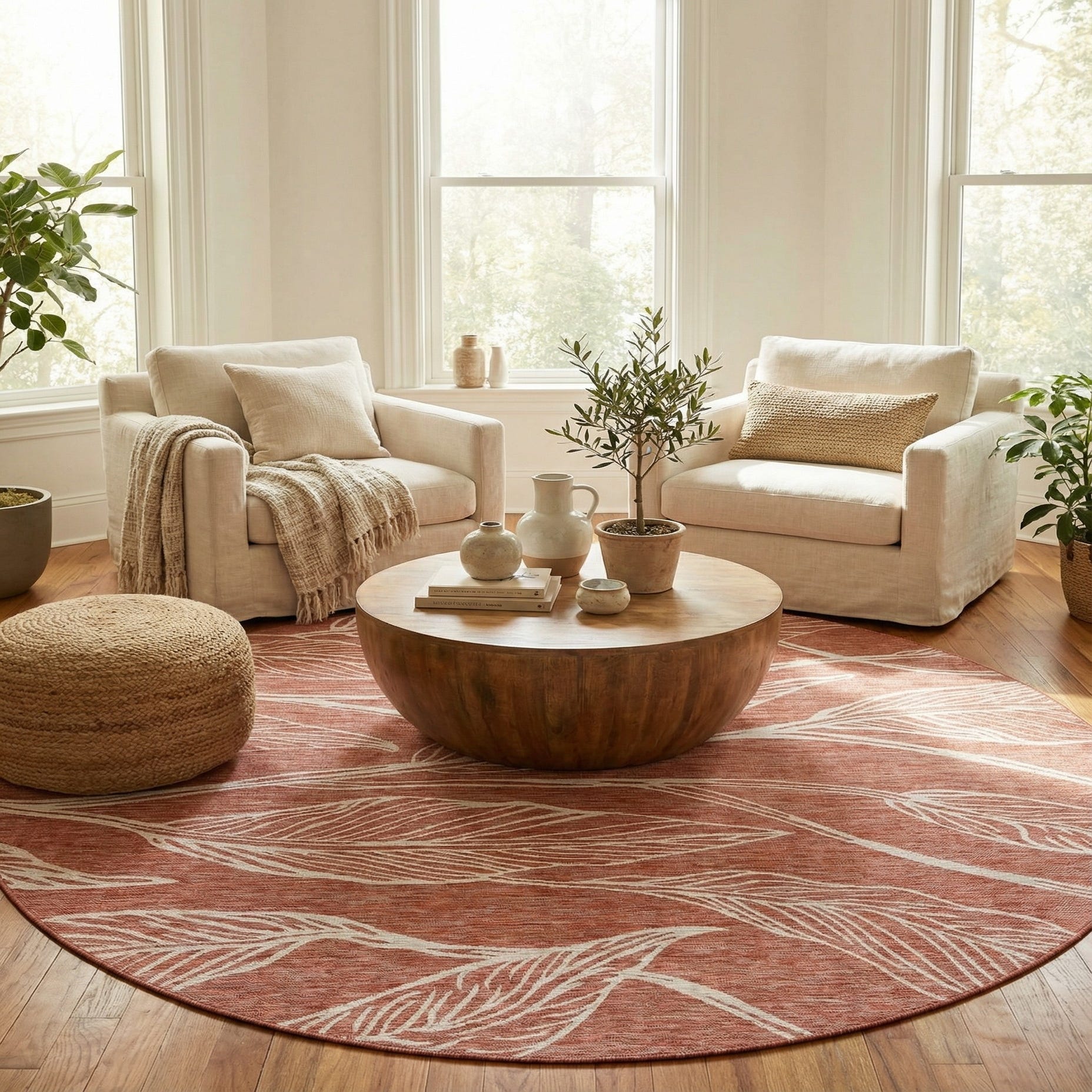 10' 8 x 10' 8 Washable Botanical Indoor / Outdoor Round Rug