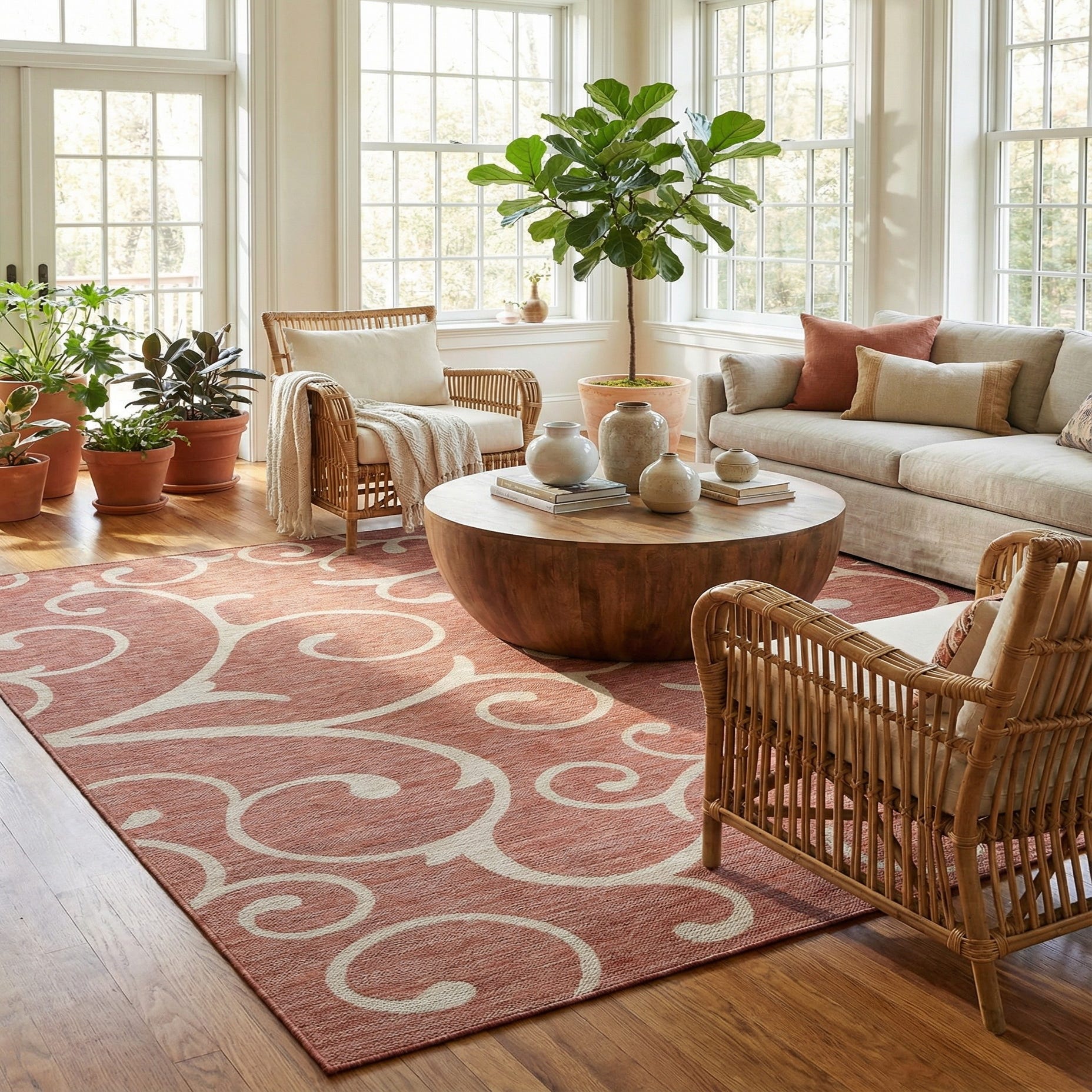 10' 8 x 10' 8 Washable Botanical Indoor / Outdoor Square Rug