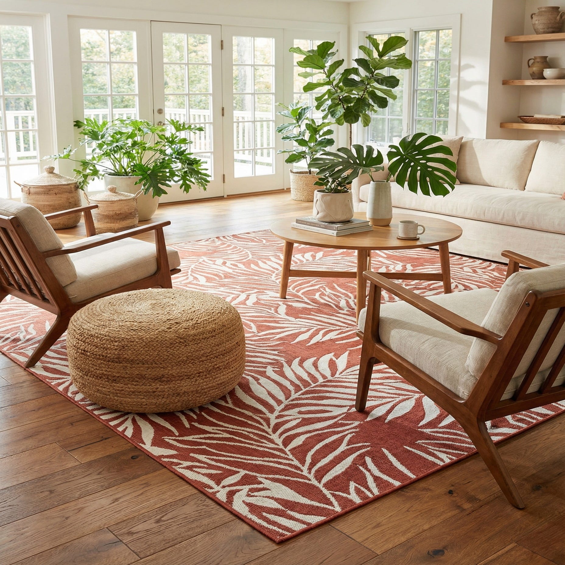 10' 8 x 10' 8 Washable Botanical Indoor / Outdoor Square Rug